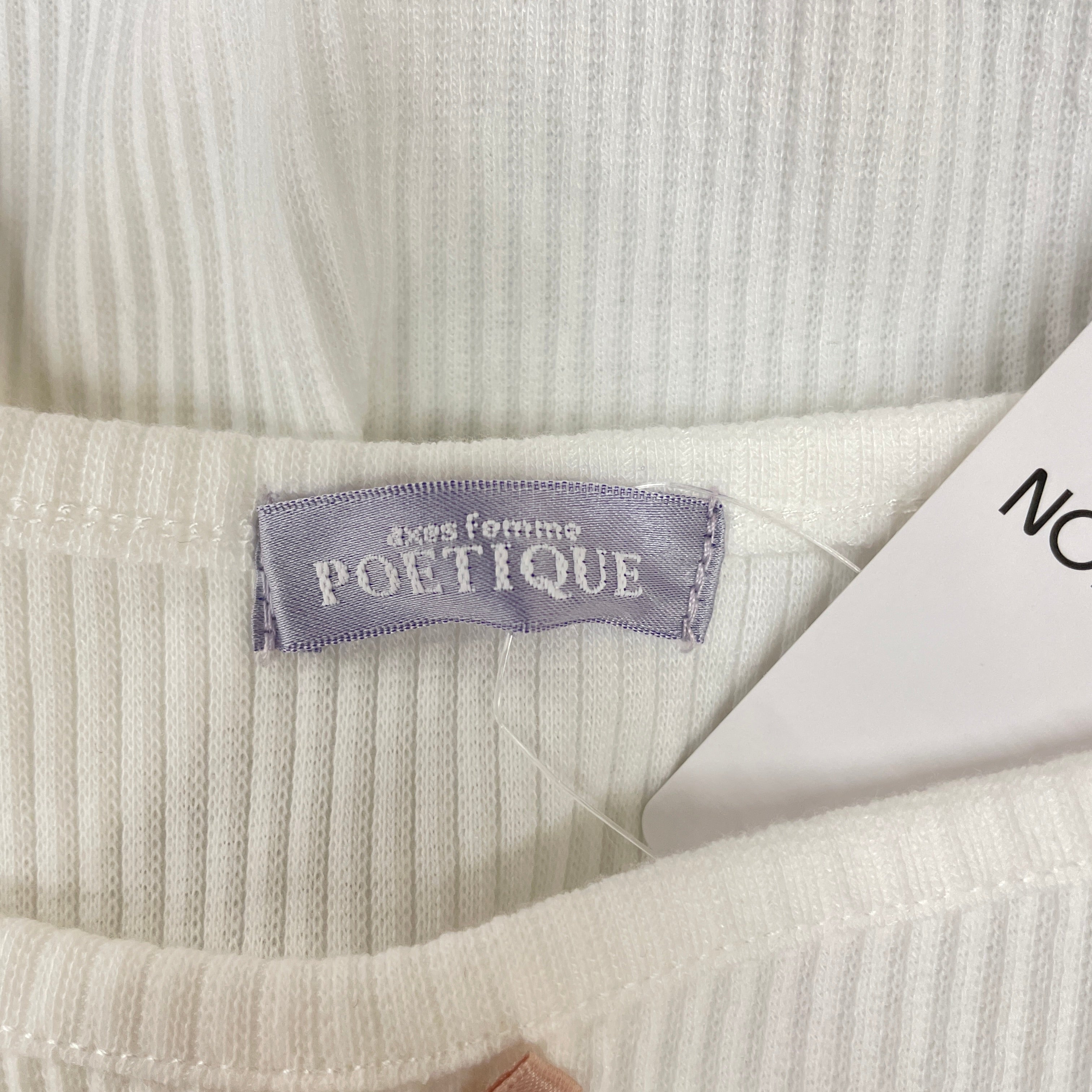ワンピース、ボトムスと合わせて着やすいデザインです。すっきりと開いた衿元にネックレスを合わせるのがおすすめです。