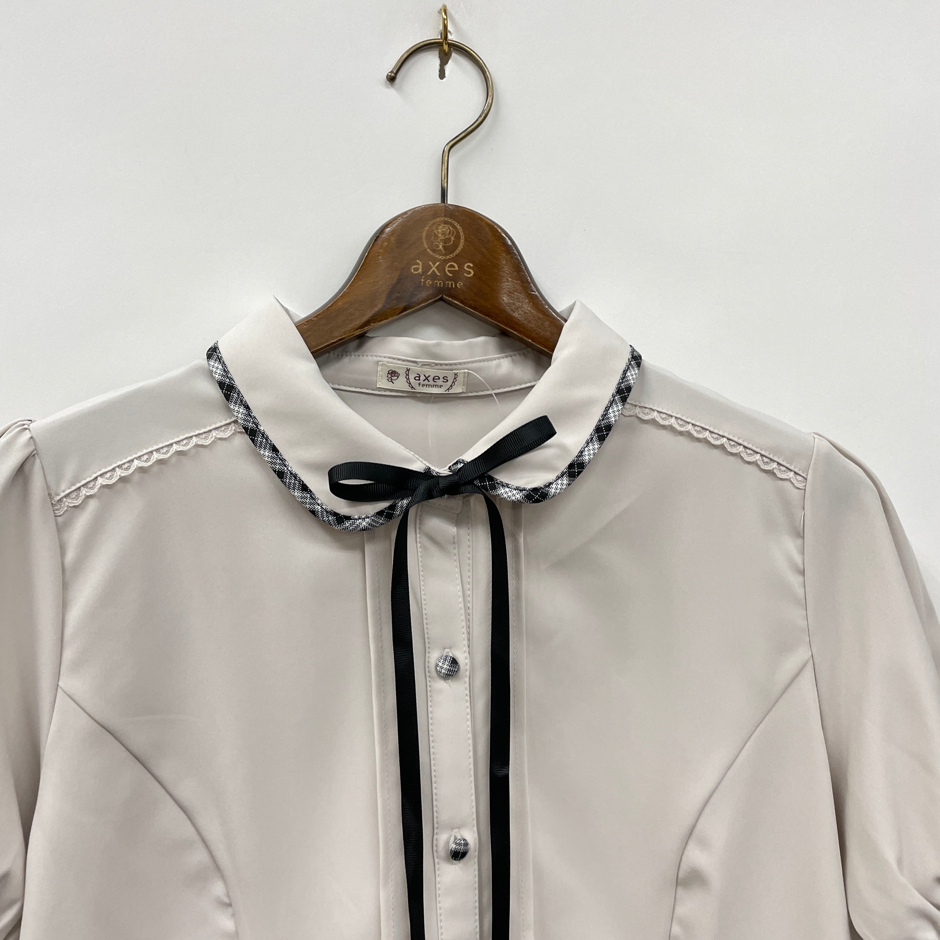 配色感のあるリボン付きでフェミニンな雰囲気に。