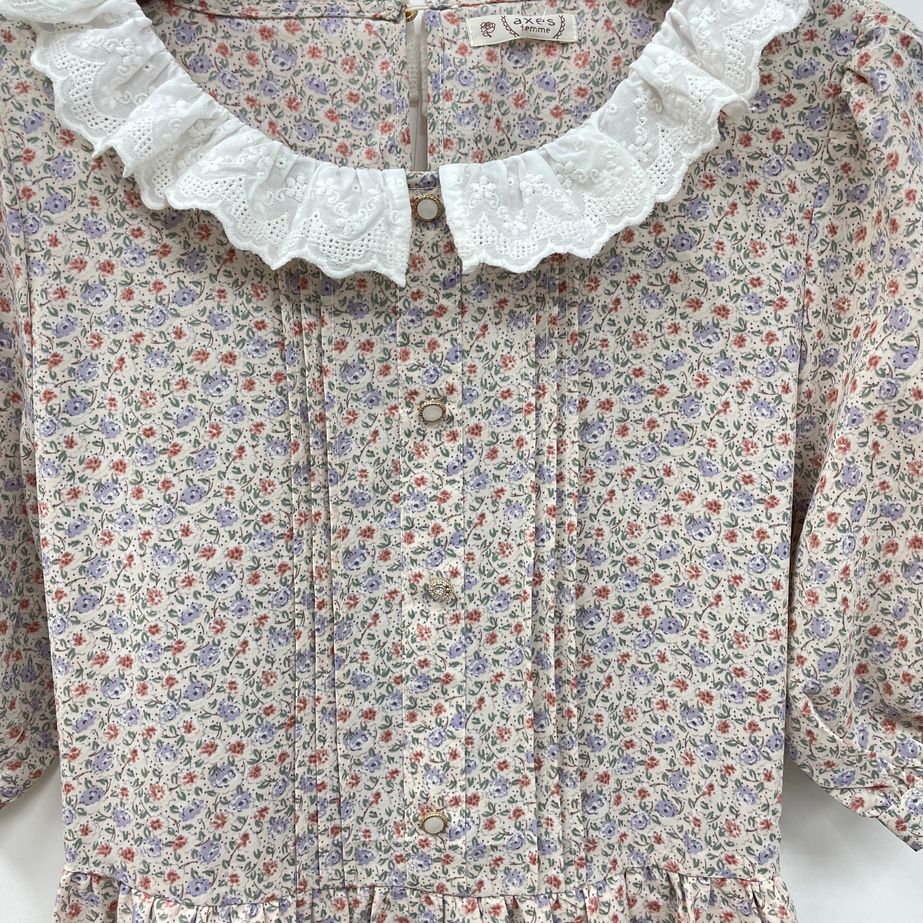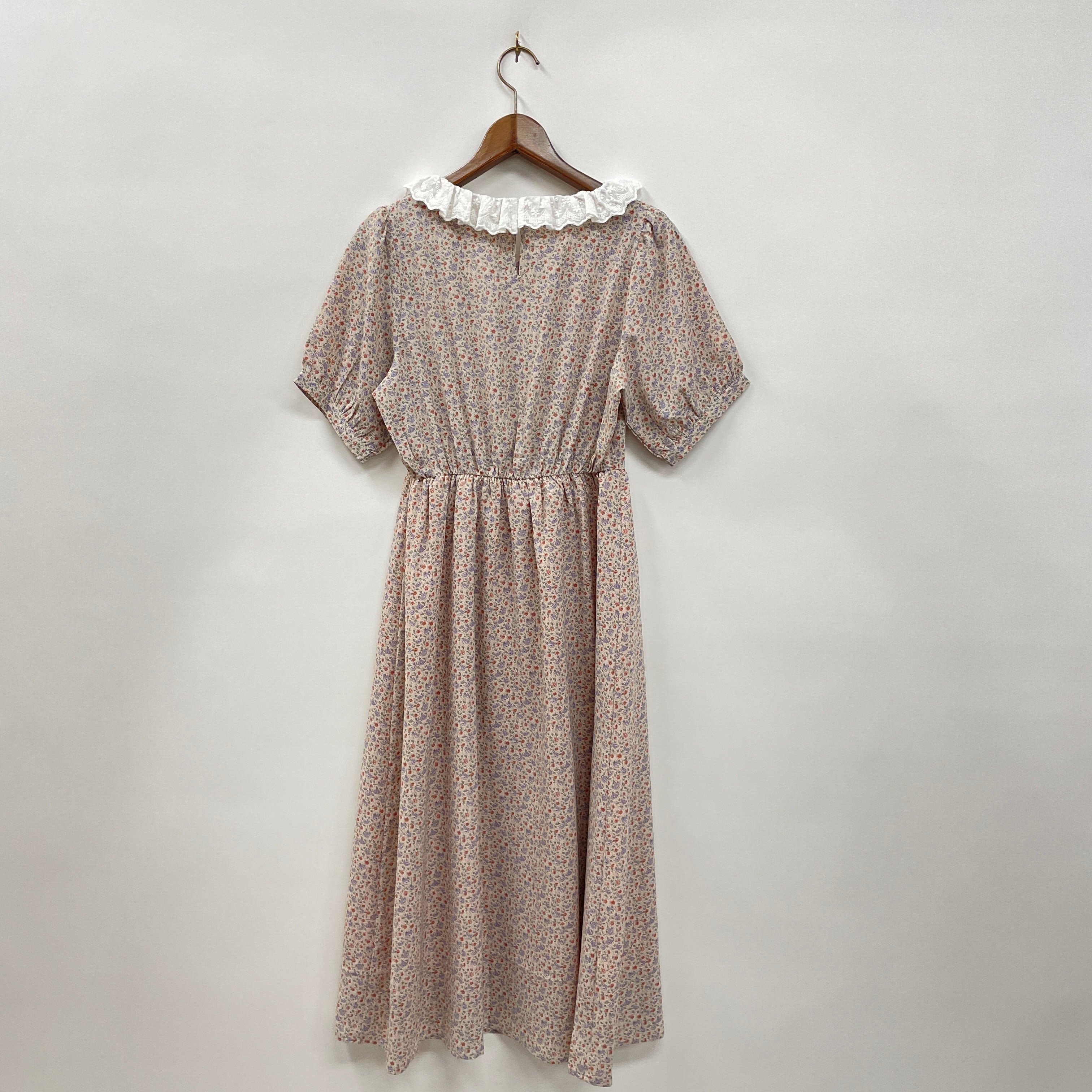 アンティークなヴィンテージショップに並んだ花柄ワンピースをイメージした1着。