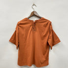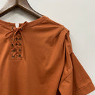 シンプルなTシャツのバックにハトメ×レースアップデザインを落とし込んだアイテム。