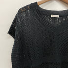 柄切替の透かし編みニットベストが爽やかな、ベスト×ロングシャツのアンサンブルです。