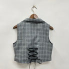 チェック×エンブレムボタンが制服風なデザインのベストです。