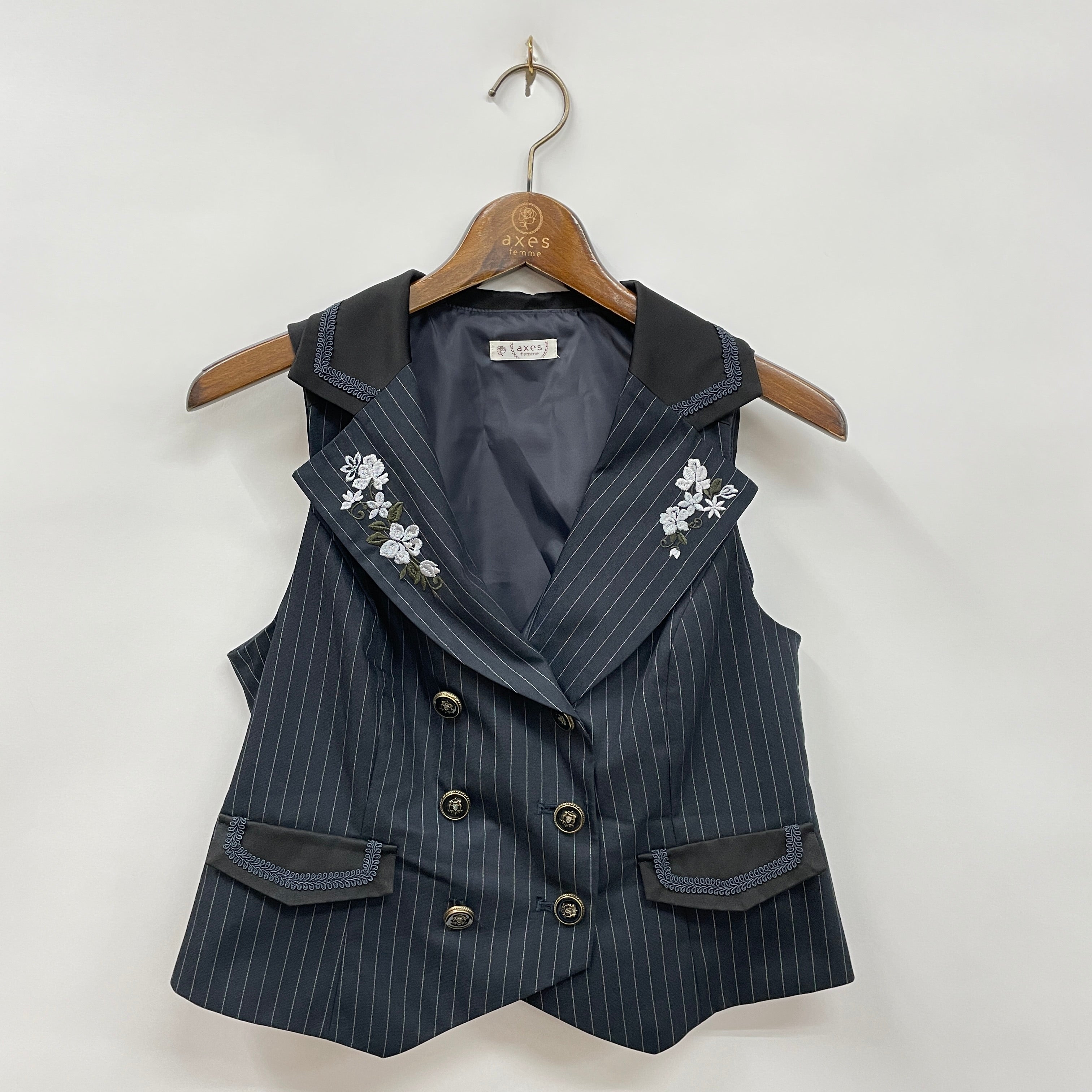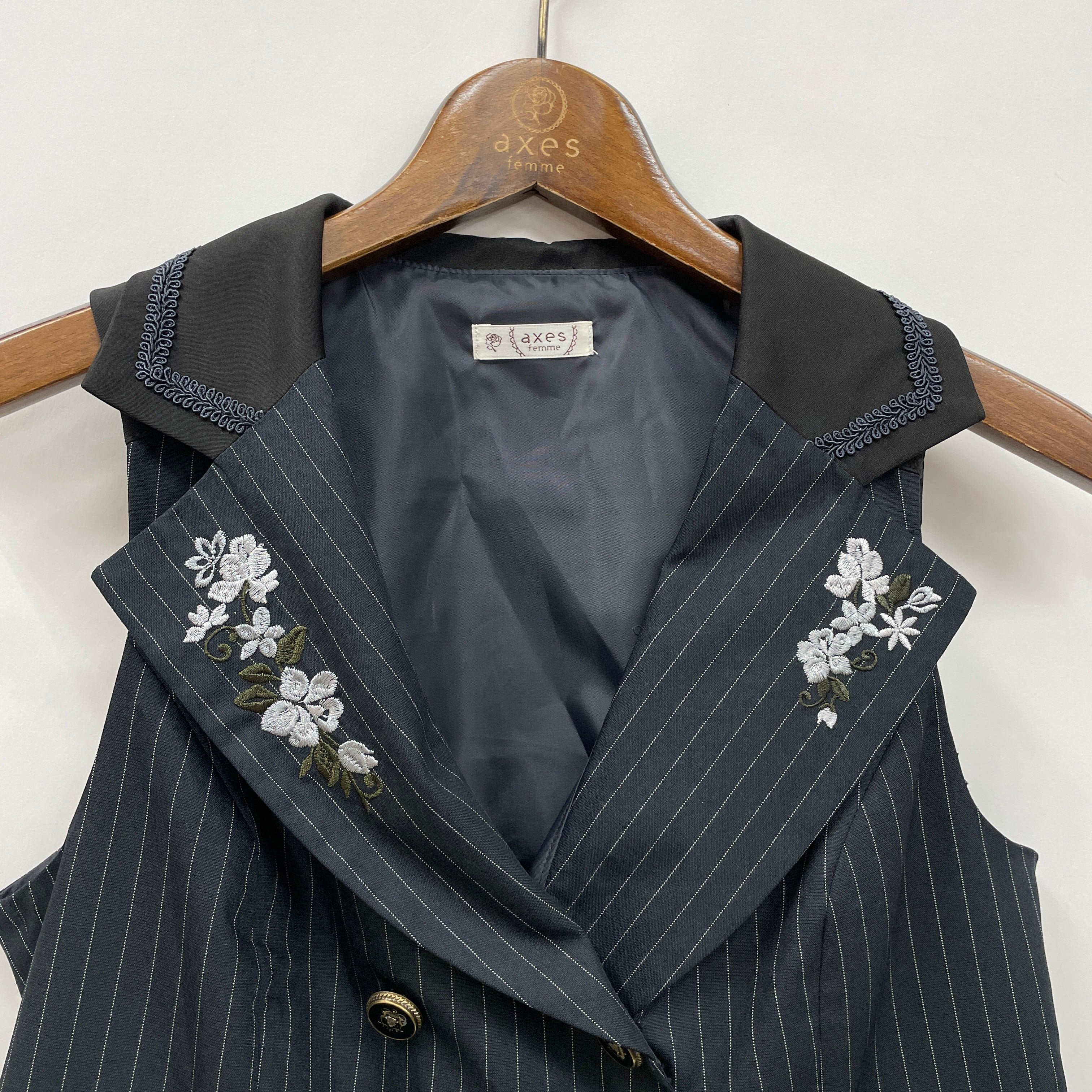 襟に花刺繍が施されたクラシカルなデザインのベストです。コーデのワンポイントにプラスするのも◎。スカート (IM285X32)と合わせたコーディネートがおすすめです。