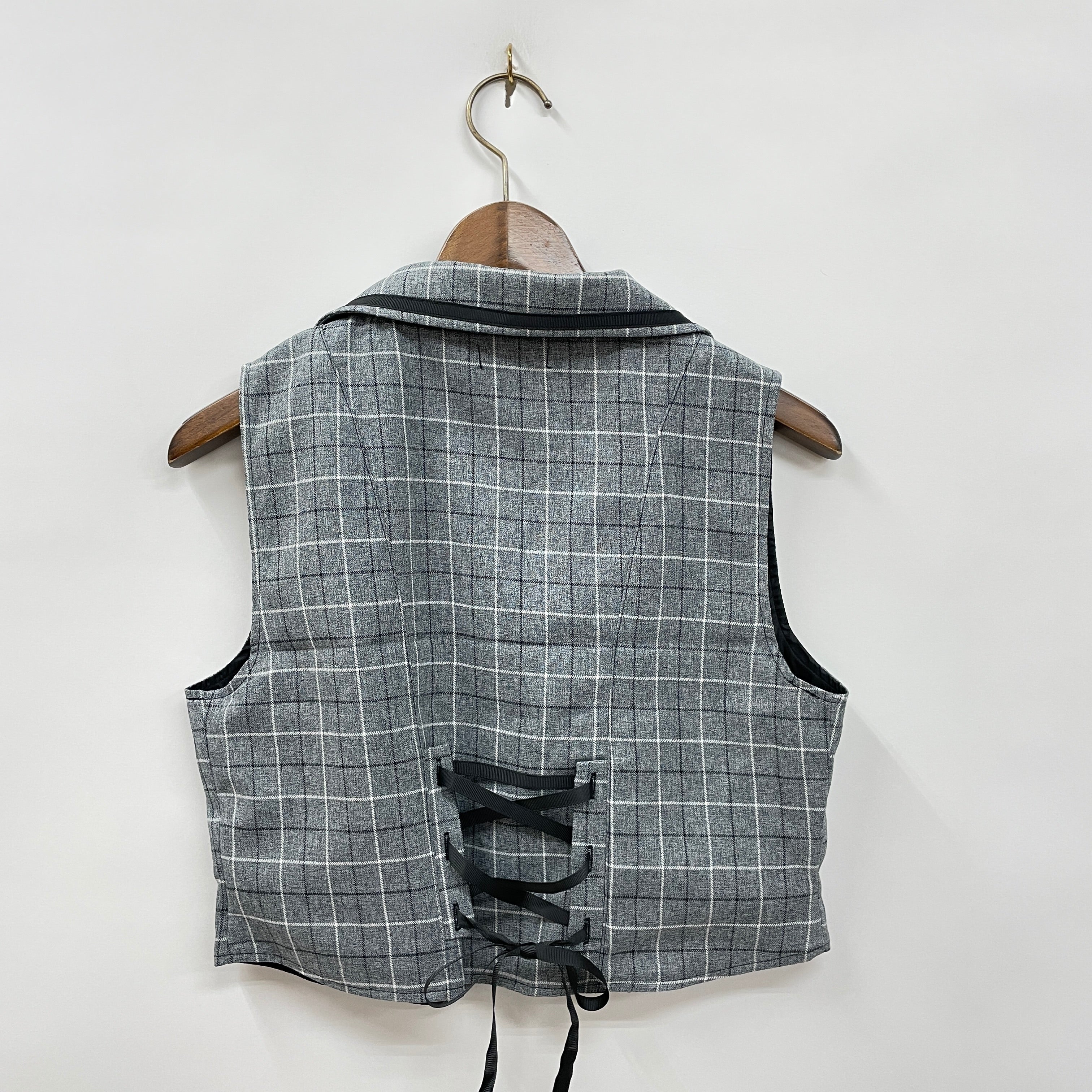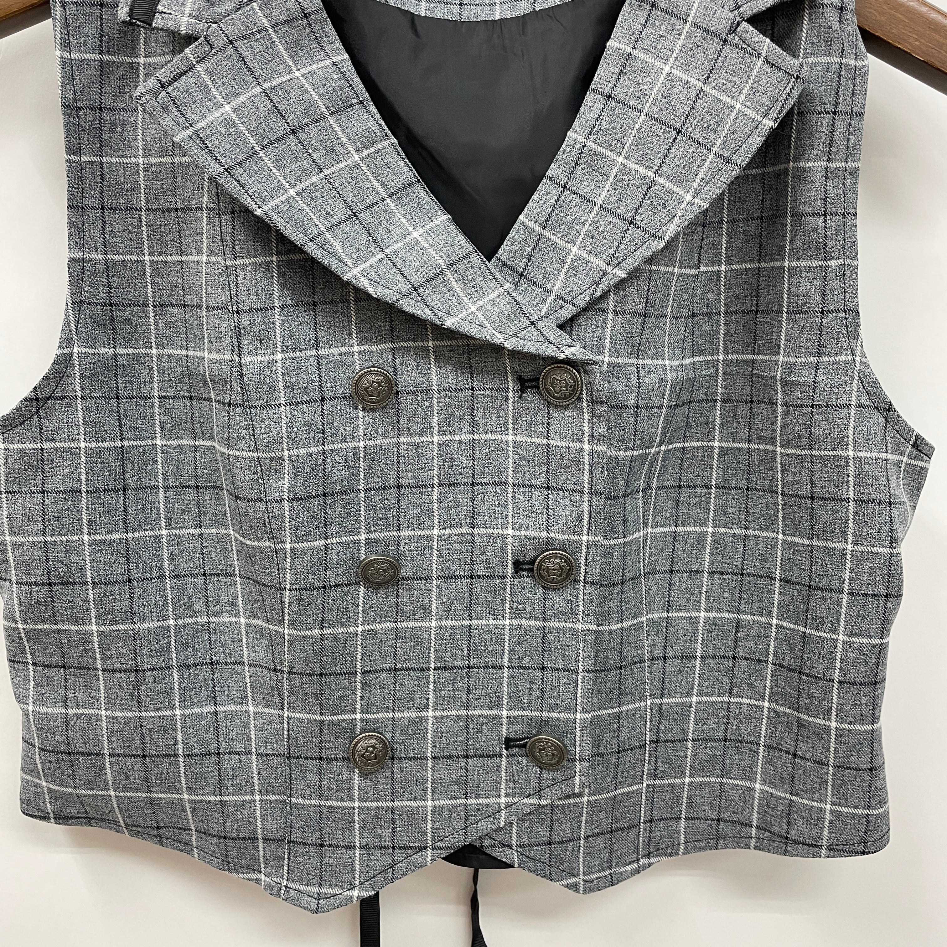 チェック×エンブレムボタンが制服風なデザインのベストです。