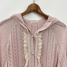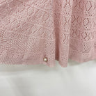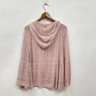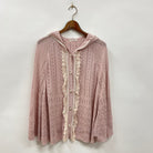 明るいカラーにレース使いが華やかな、透かし編みのニットポンチョです。