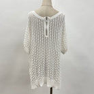 透け感のあるニットなのでタンクやシアーインナーと合わせたり、キャミワンピースの上に着るレイヤードスタイルがおすすめです。