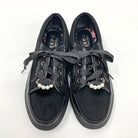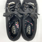 同色の合皮を切り替えたデザインに、グログランリボンのレースアップがポイント。