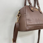 トレンドの半円型にaxes femmeらしい型押しと刺繍を施した、他にはないバッグです。
