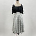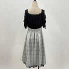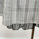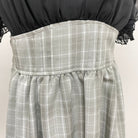 シフォンブラウスと、チェック柄のスカートをドッキングしたデザイン。