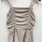 トレンドのギャザーデザインが目を惹くキャミワンピースです。軽やかな素材感と流れるようなシルエットが特徴で、カジュアルスタイルにぴったりです。