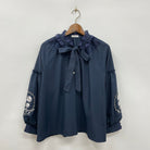 ネックラインに繊細なレースやリボンデザインを落とし込んだプルオーバータイプのブラウスです。