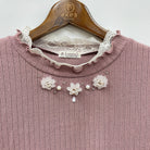立体のお花モチーフをやビジューを胸元に施したトップスです。