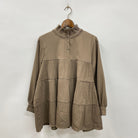 ティアードのデザインが女性らしいチュニックです。広がりすぎないシルエットで、パギンスと合わせたカジュアルな着こなしもおすすめです。」
