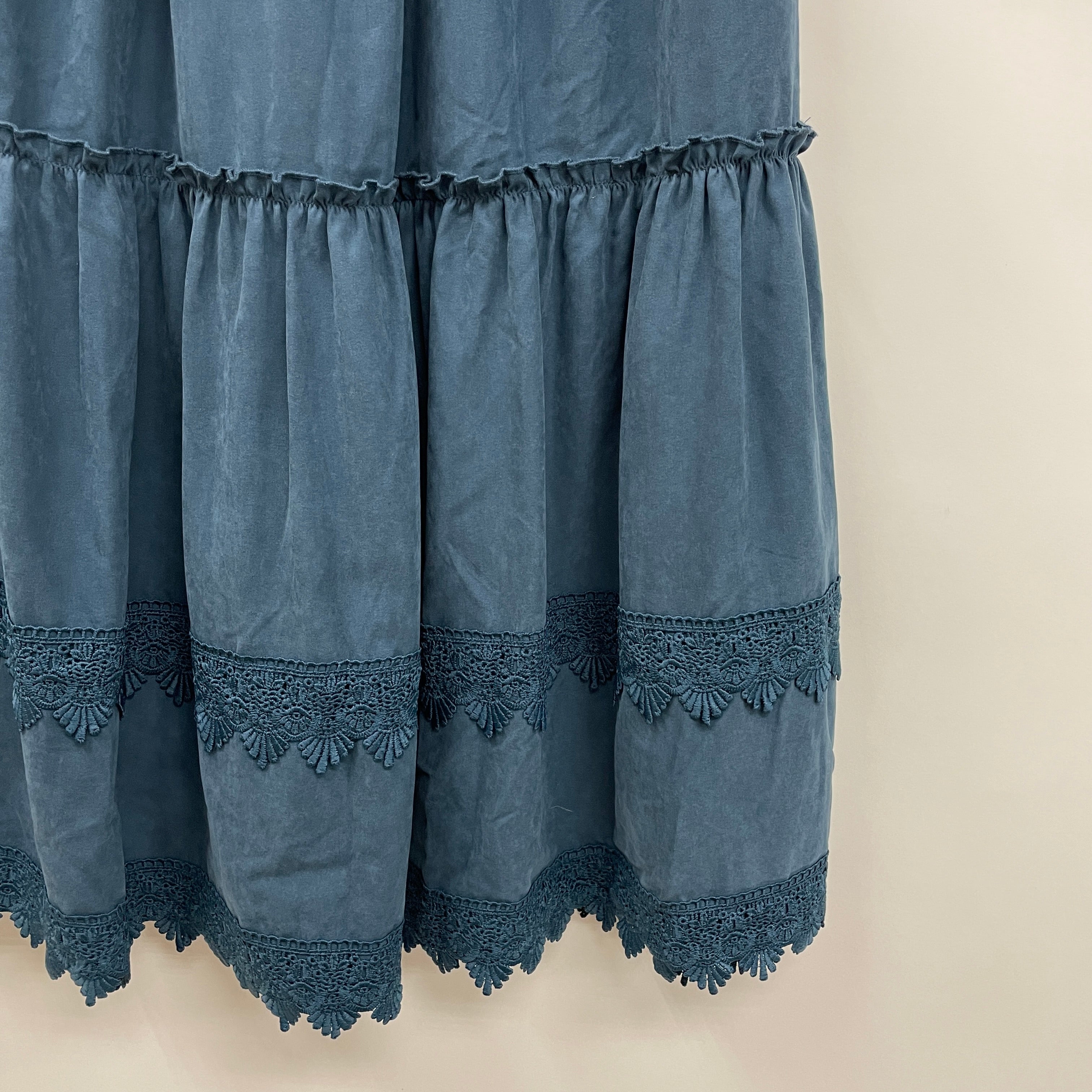 ティアードの切替には身頃と同色のケミカルレースをあしらい、存在感がありながらも履きやすく、コーデの組みやすいアイテムです。