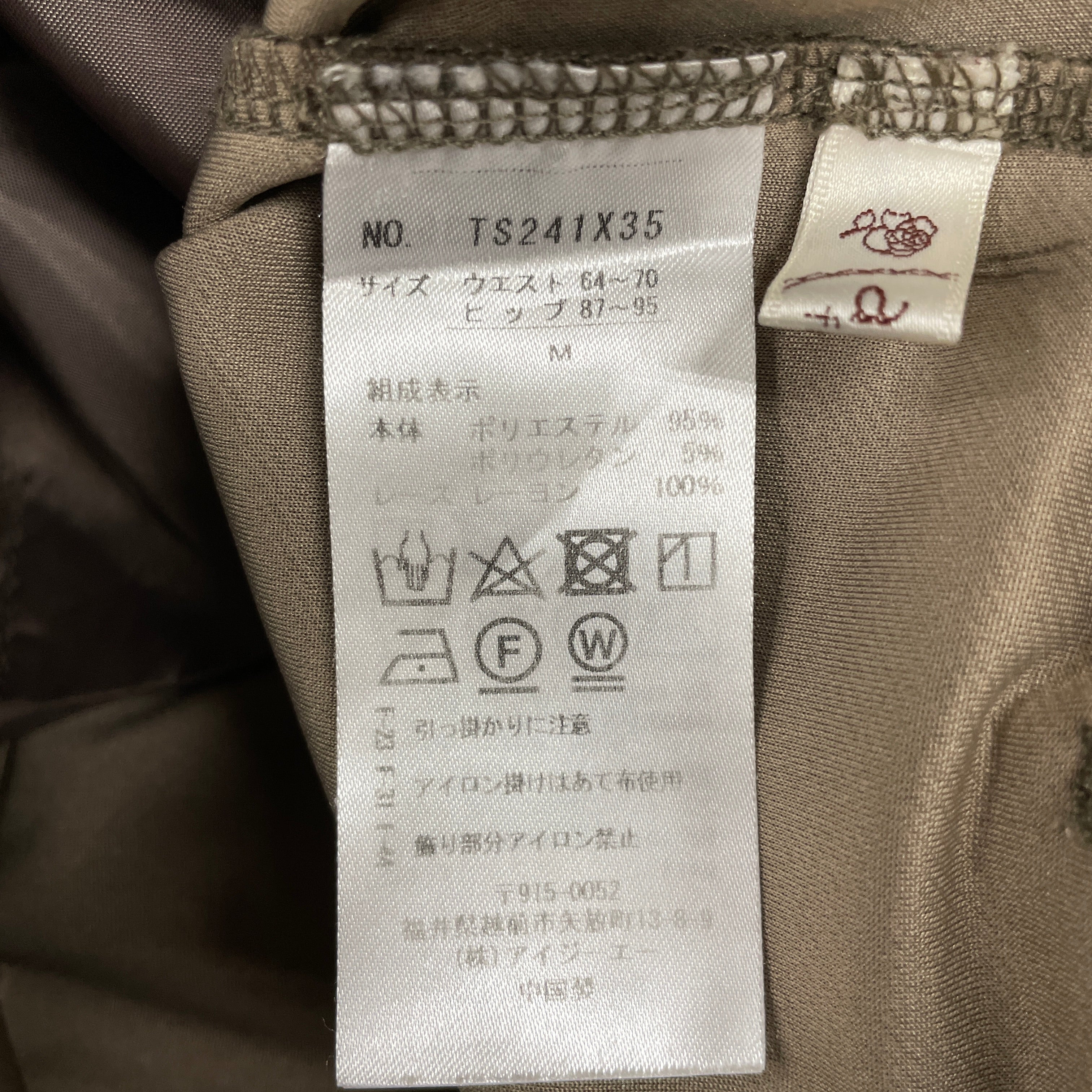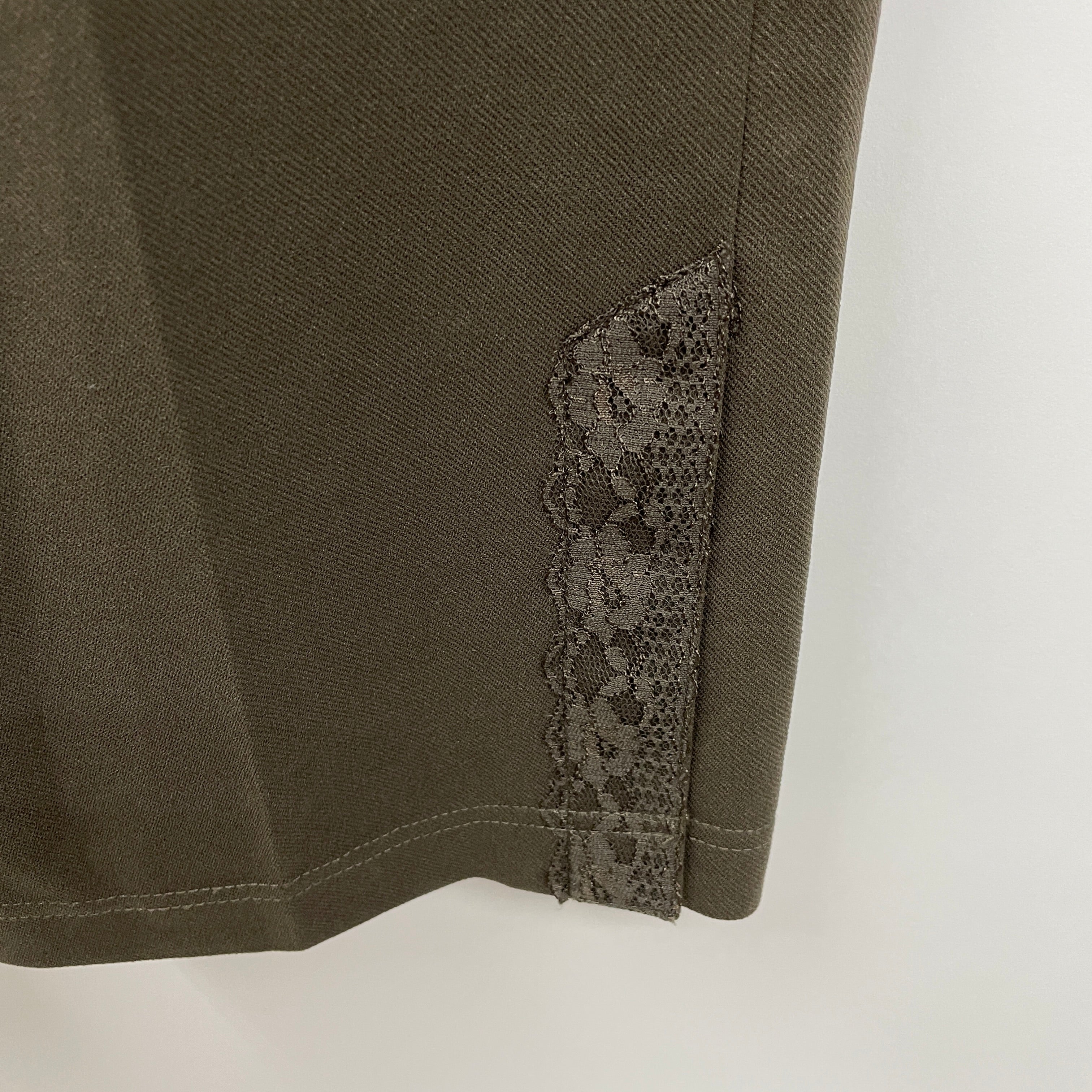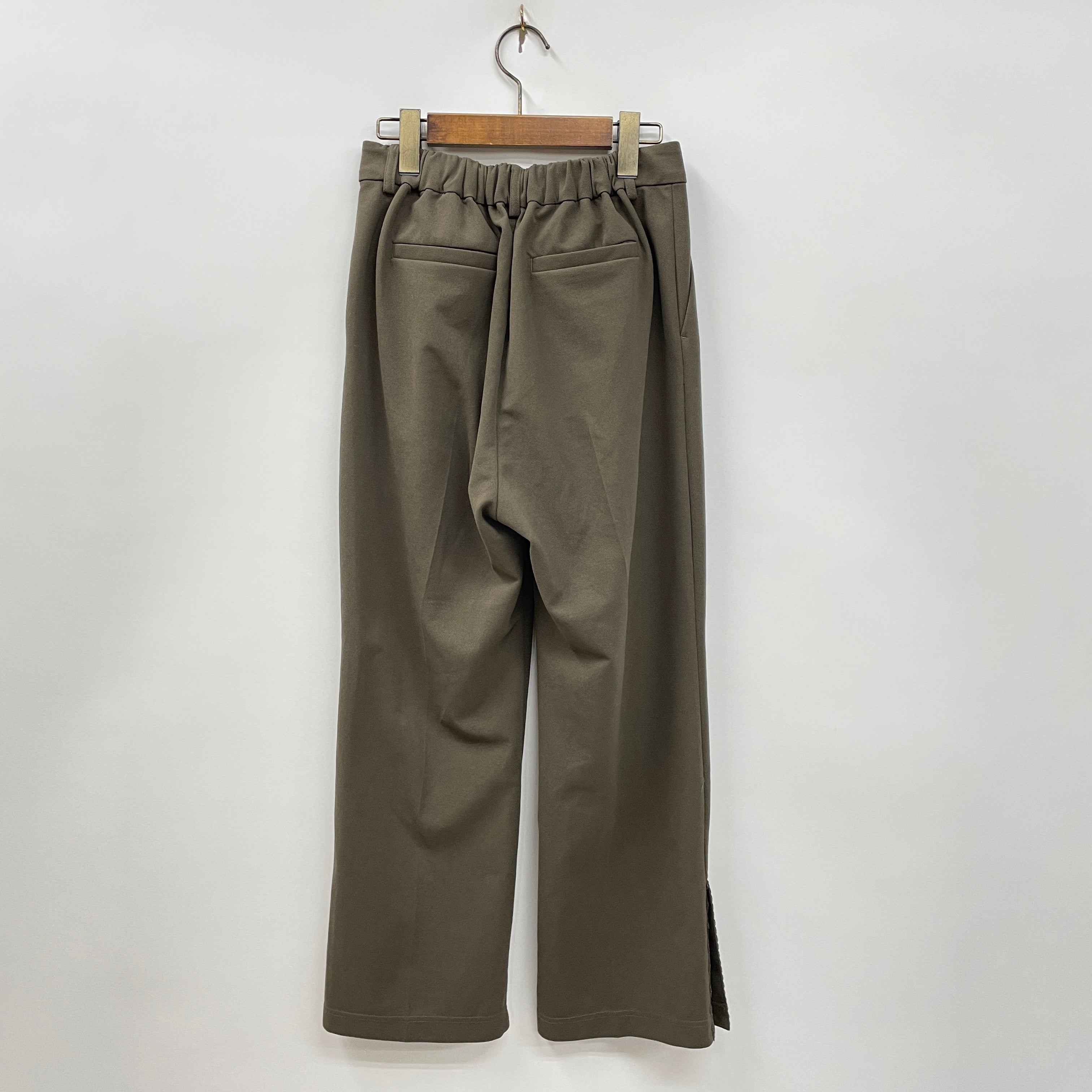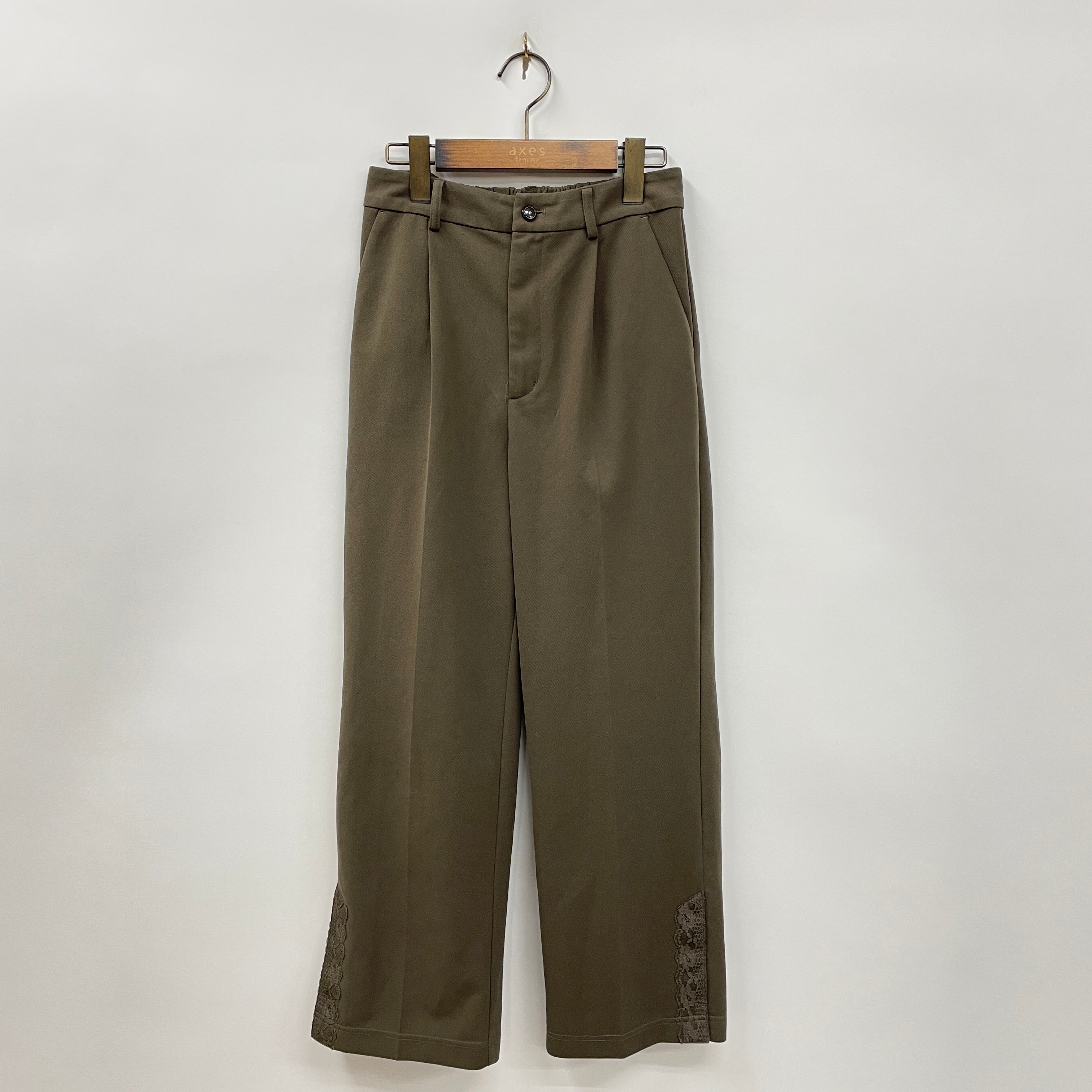 ベルト先にワンポイントで花刺繍の入ったカットパンツです。裾はスリットデザインになっており、隙間からのぞくレースがポイント。柔らかくて伸縮性の良いカット素材を使用している、トレンド感のあるアイテムです。すっきりしたシルエットですが、ウエストは後ろがゴムの仕様なため安心して履ける便利な1枚です。