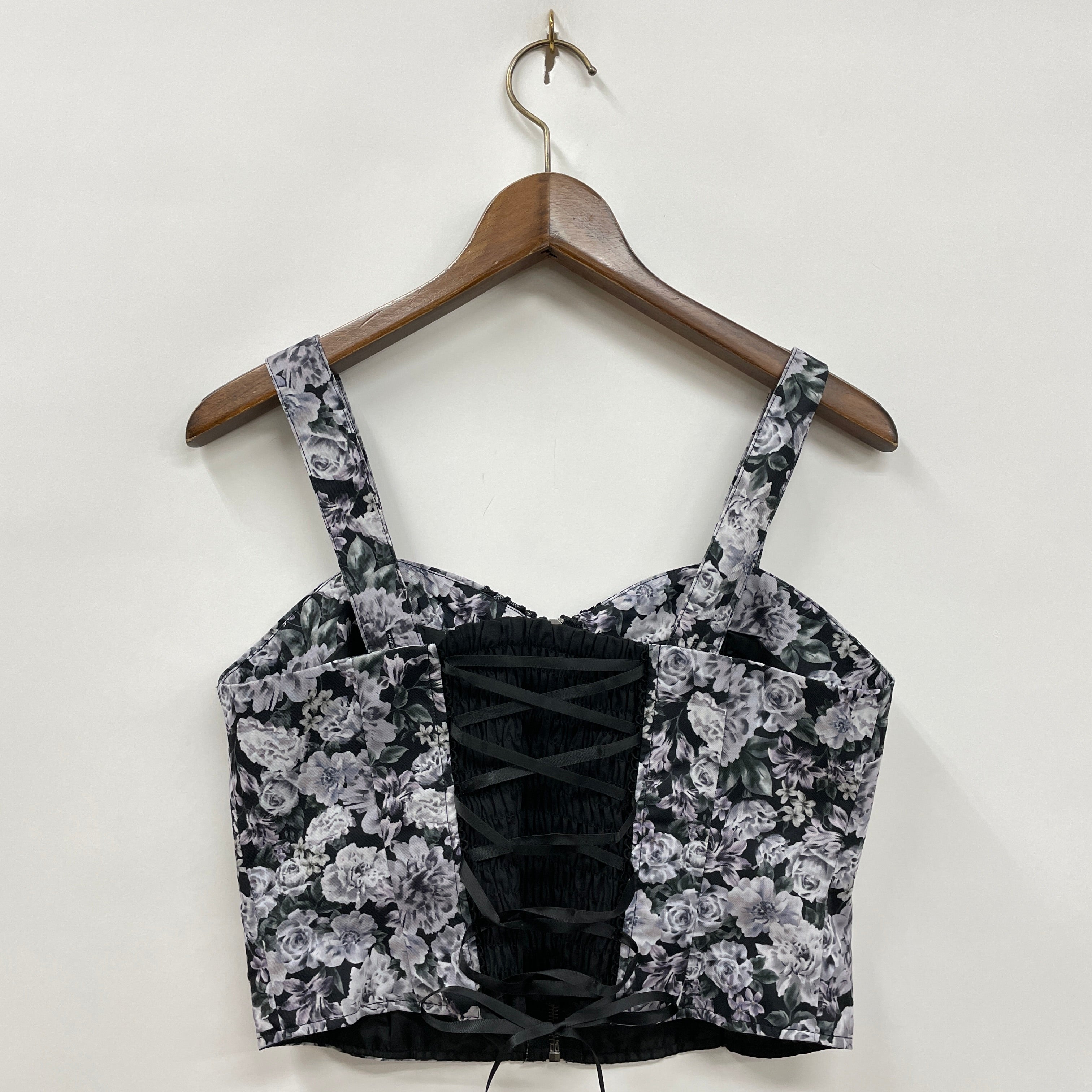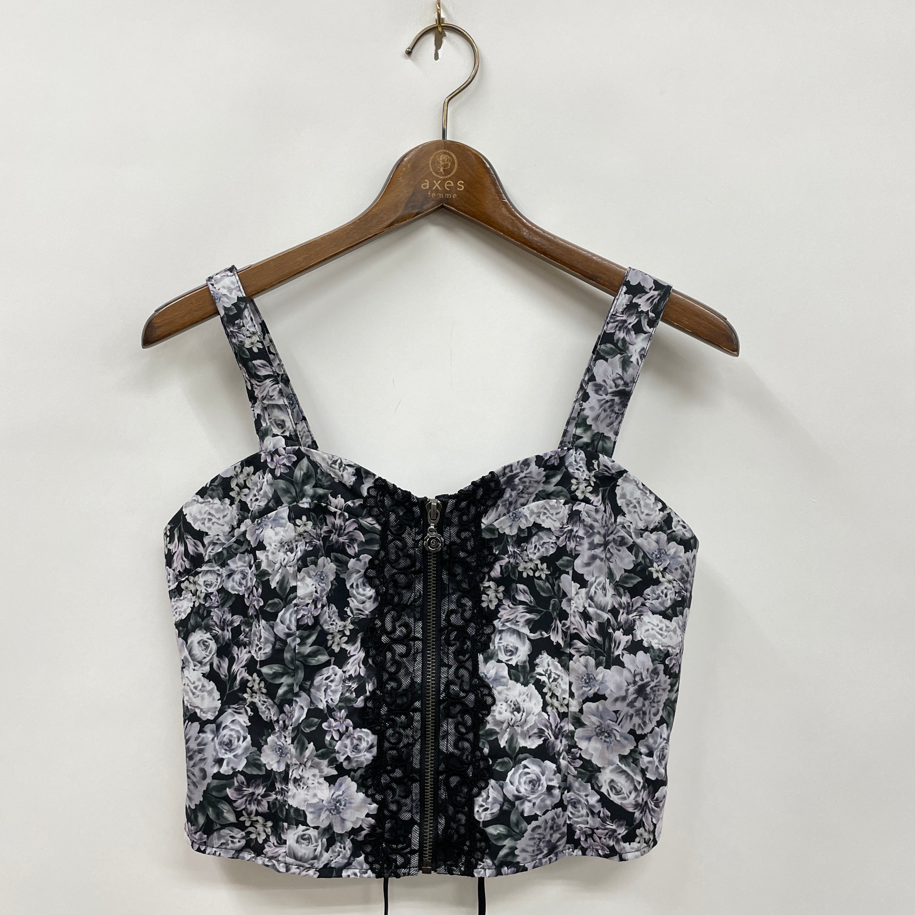 エレガントな総花柄が華やかなビスチェです。