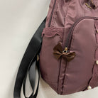 フロントポケットのレースとパール使いがポイントのナイロン風素材のリュックです。