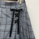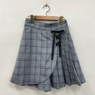 ボックスプリーツの上にラップ風に重なった、アシンメトリーデザインがポイントのキュロットです。