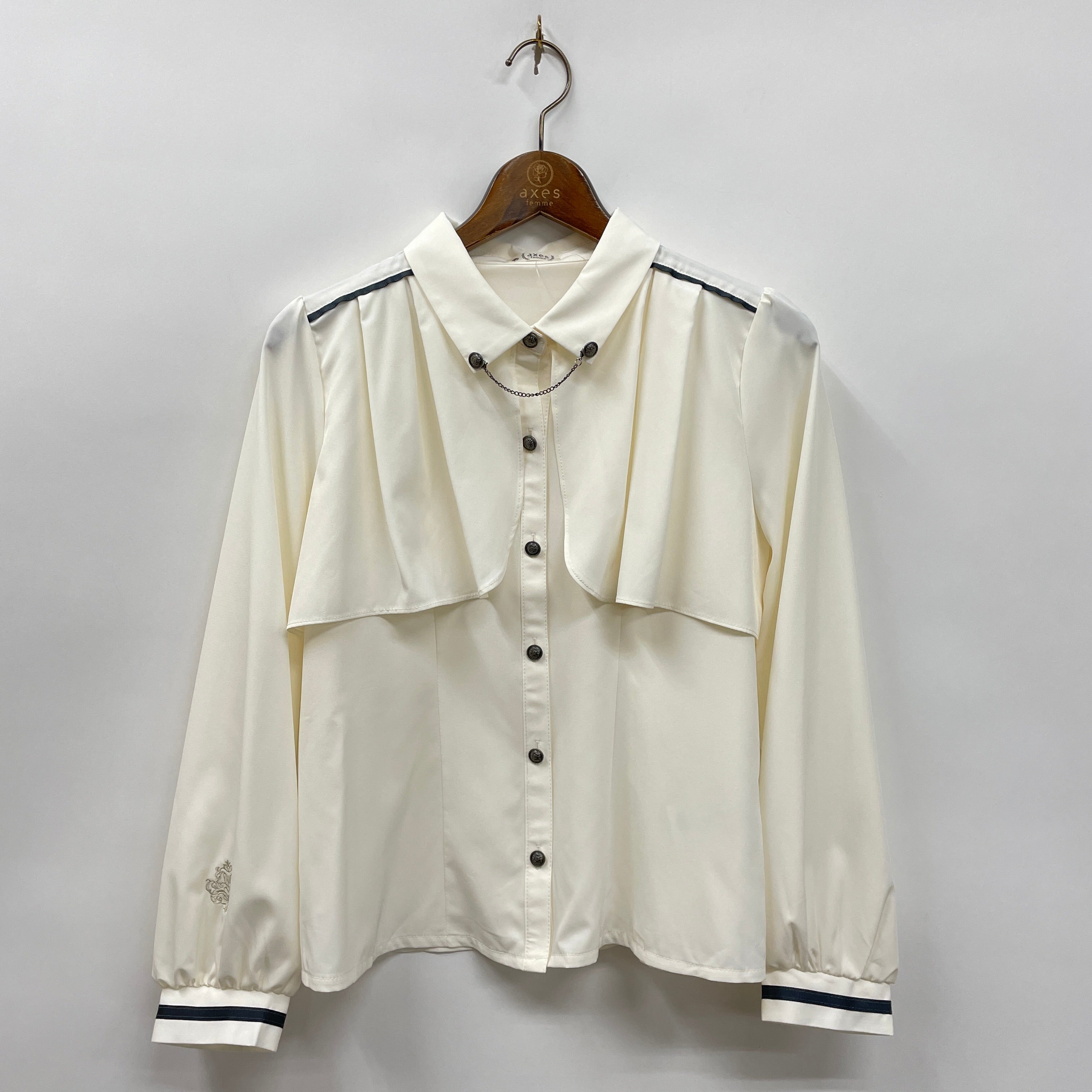 フラシデザインがミリタリーチックに決まるブラウスです。