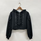 もっちりとしたダンボール素材と、フリルがポイントのショート丈パーカーです。