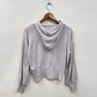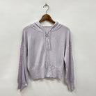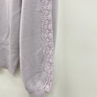 袖にレースをあしらったニット素材のパーカーです。