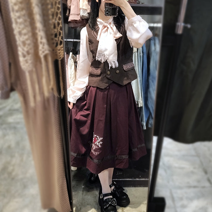 華やかなロース刺繍をほどこしたフレアスカートです。