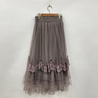 たっぷりとしたドレープの効いたシルエットと、巻き薔薇がポイントになったチュールスカートです。【デザイン】