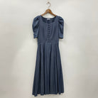 ボリュームがあるパワショル袖は肩幅を調節しゴツくならないロマンティックに見えるシルエットに仕上げました。ハートカットの衿とくるみ釦がクラシカルさを演出してくれ、たっぷりとフレアを入れたスカートは動くたびにふんわりと広がり気分を上げてくれるデザインです。1枚でサラッと着れるのも嬉しいポイントです。