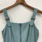 フロントのジッパーで着脱ができて、後ろにはシャーリングゴムが通っているので、圧迫感を感じにくく着心地抜群◎