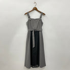 光沢感のあるレースがバイカラーになって切り替わったジャンパースカートです。