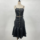 華やかな光沢感のあるジャカード生地を使用したビスチェとマーメイドスカートのセットアップです。