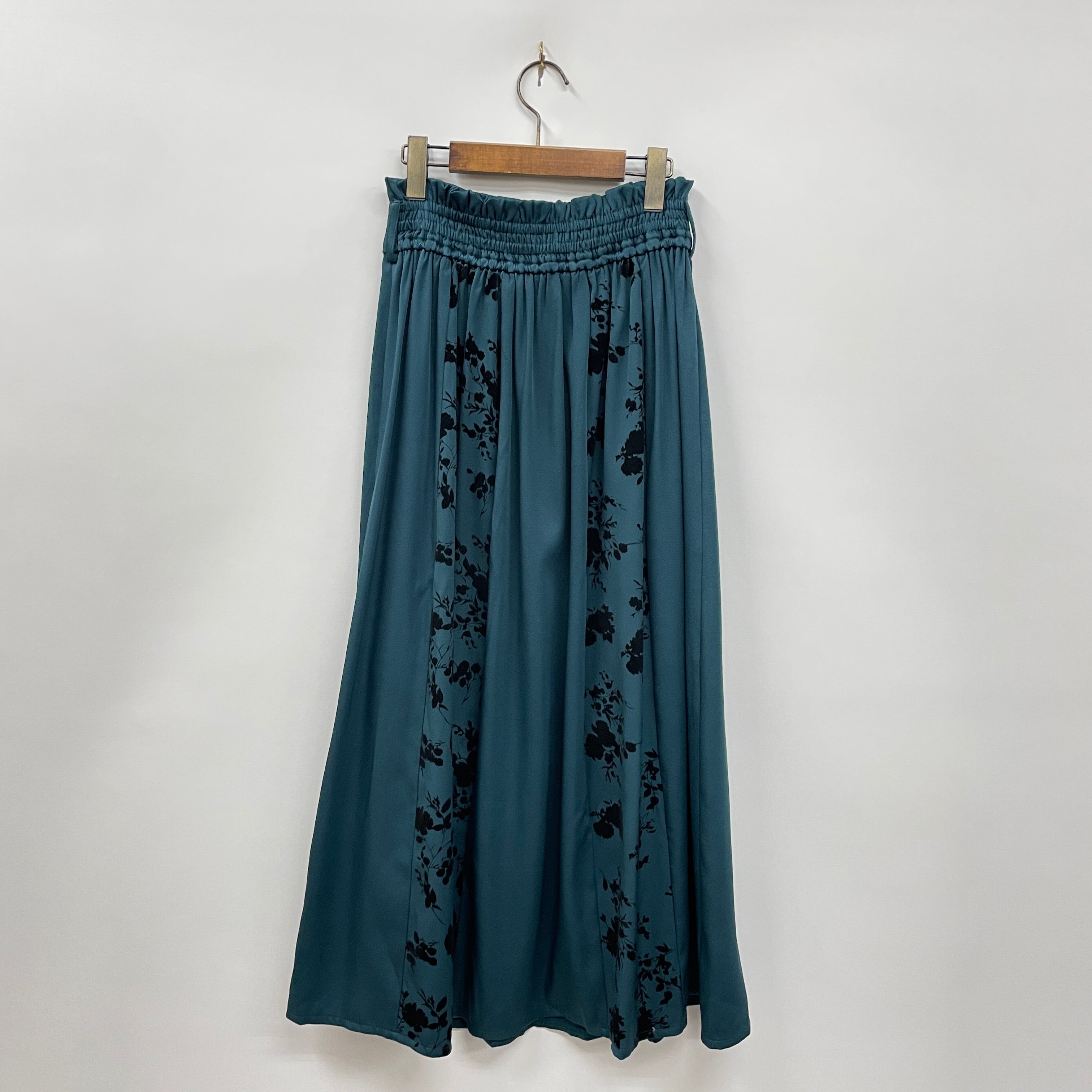 ウエストはまわりすっきりと、裾にかけて適度に広がるシルエットがエレガントなスカート。
