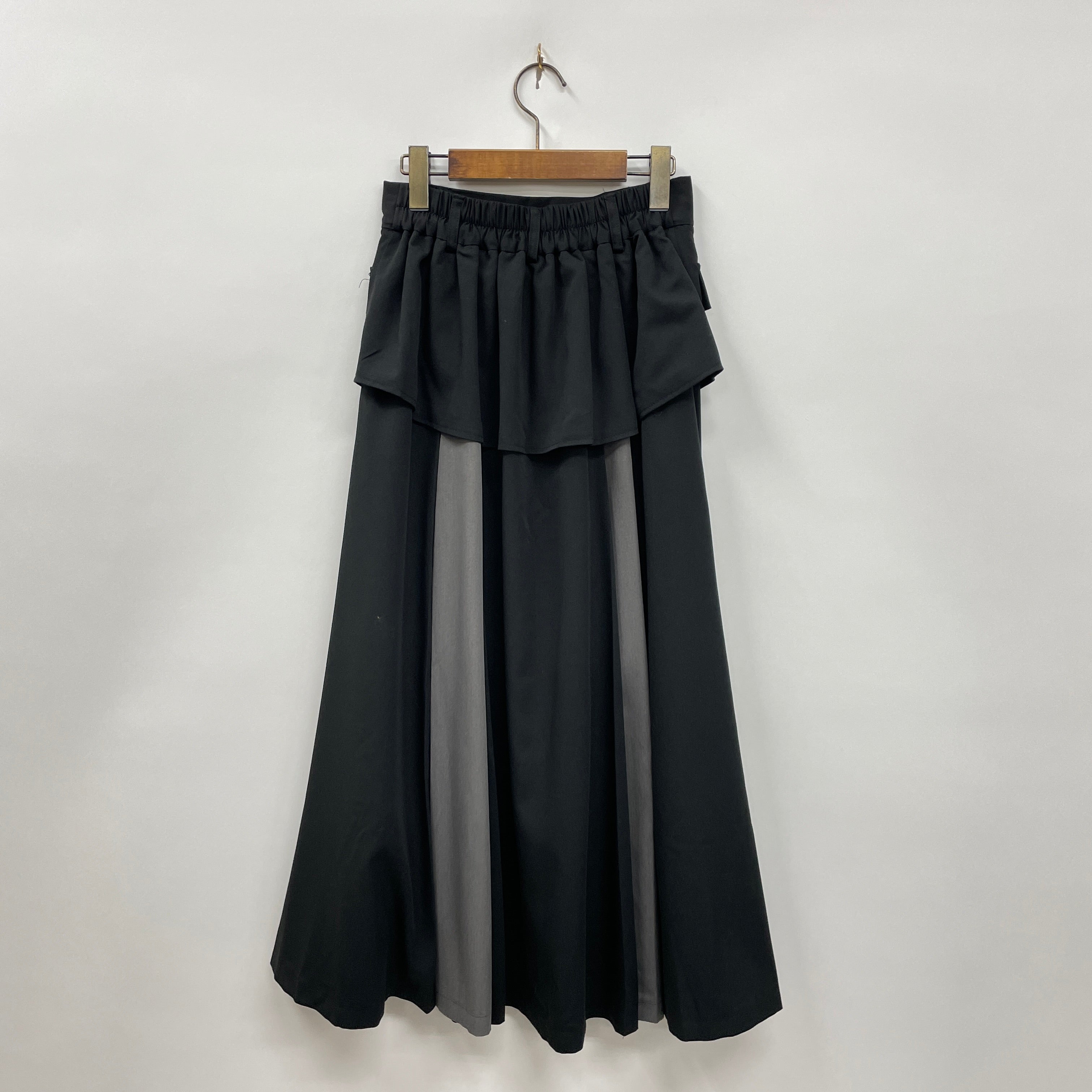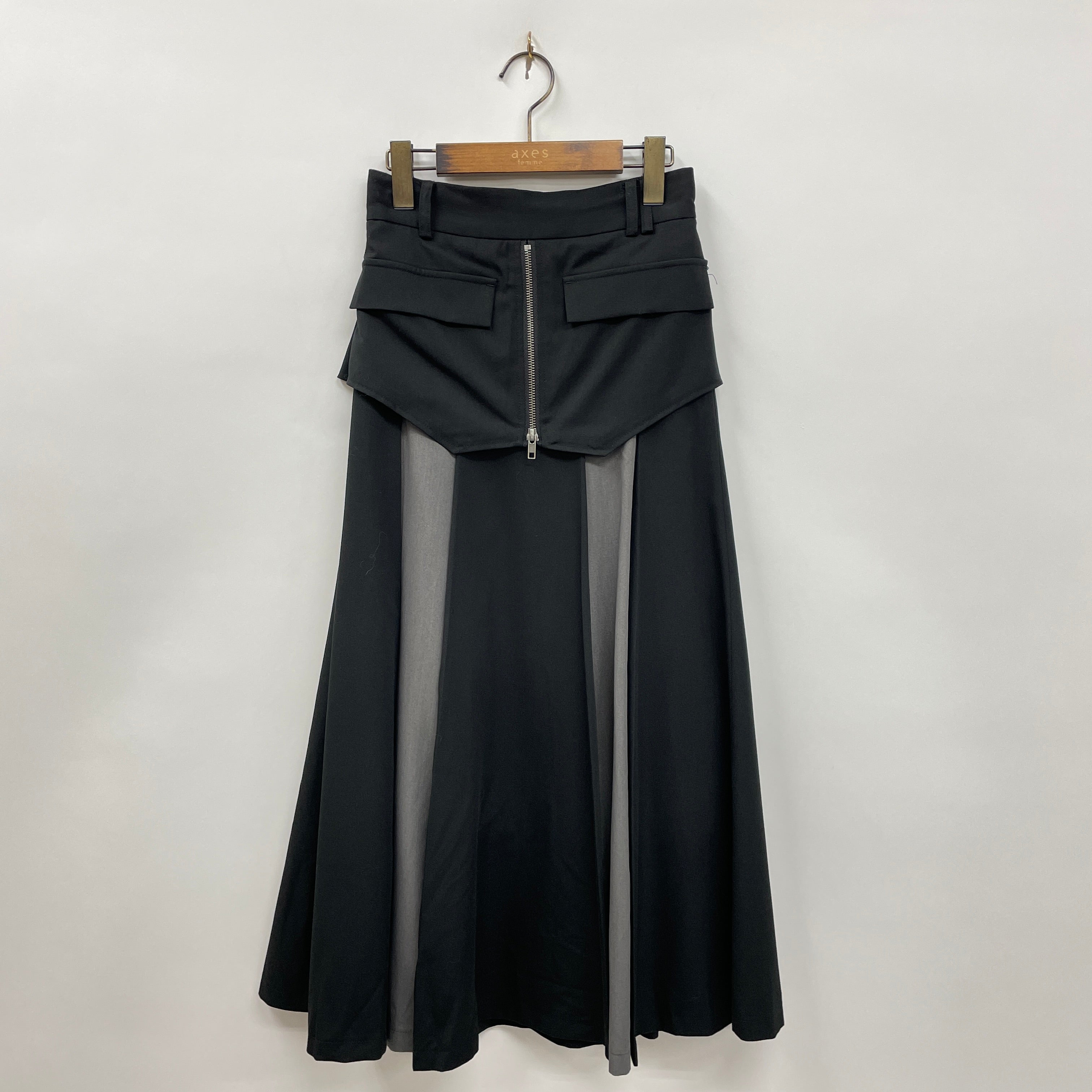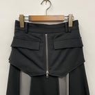 コルセットベルトを重ねているような、1着でレイヤードスタイルが叶うスカートです。
