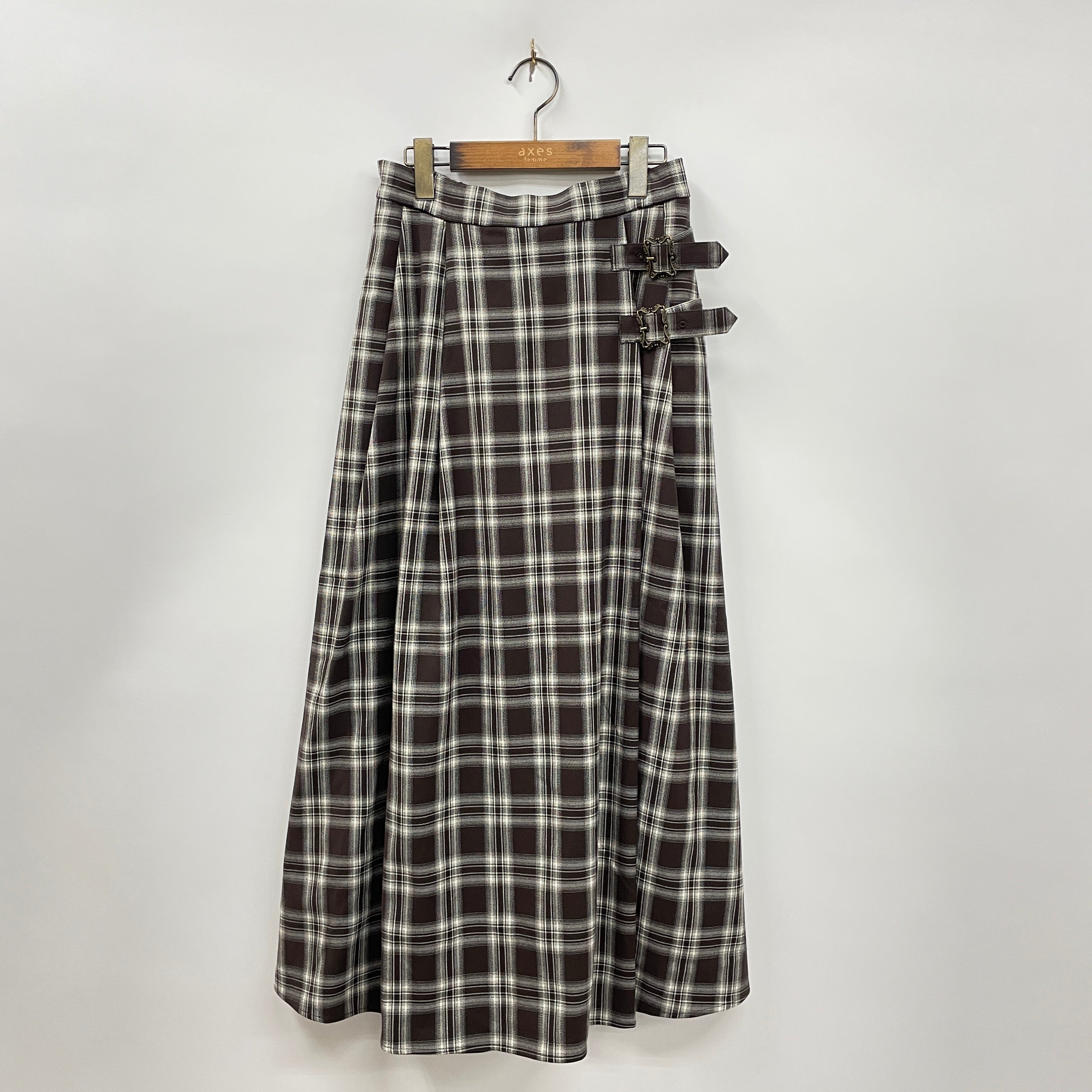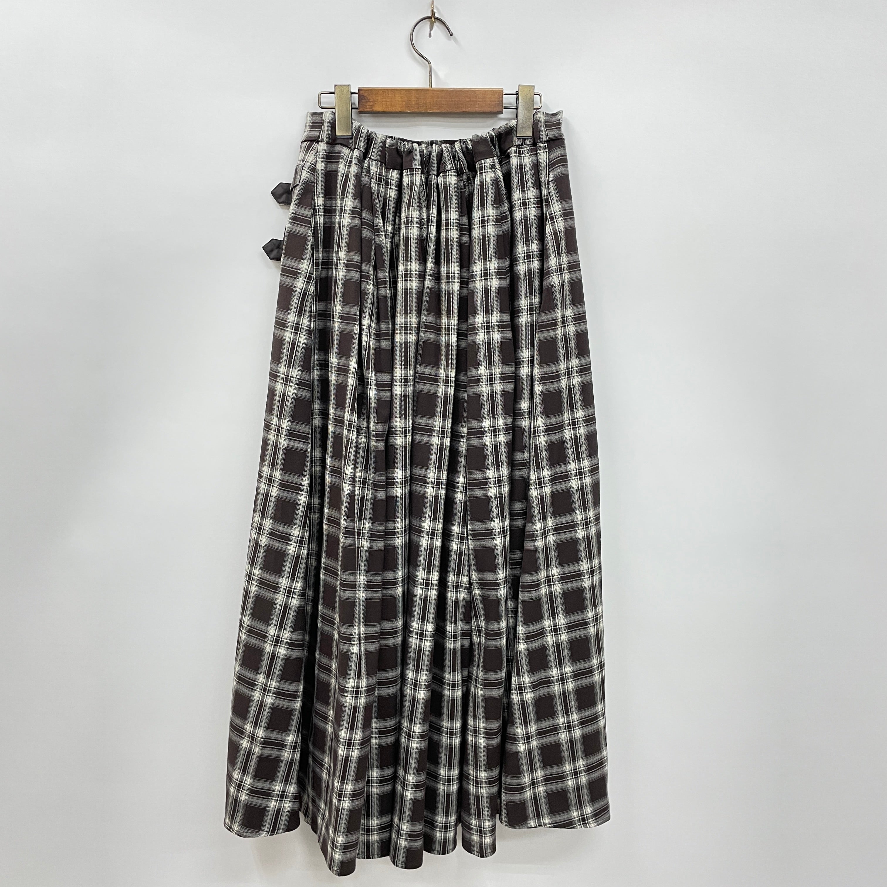 季節感と暖かみを感じるチェック柄のロングスカートです。