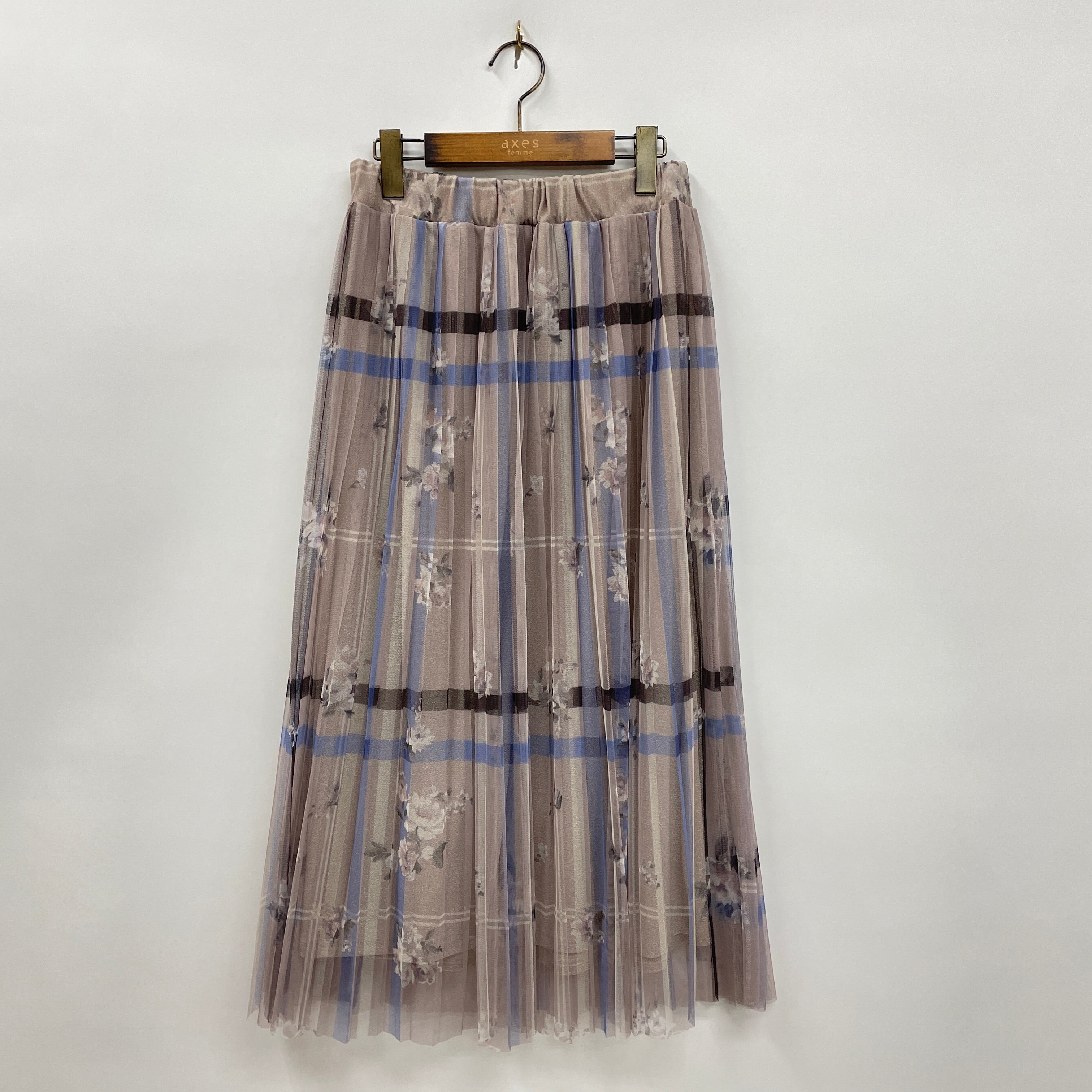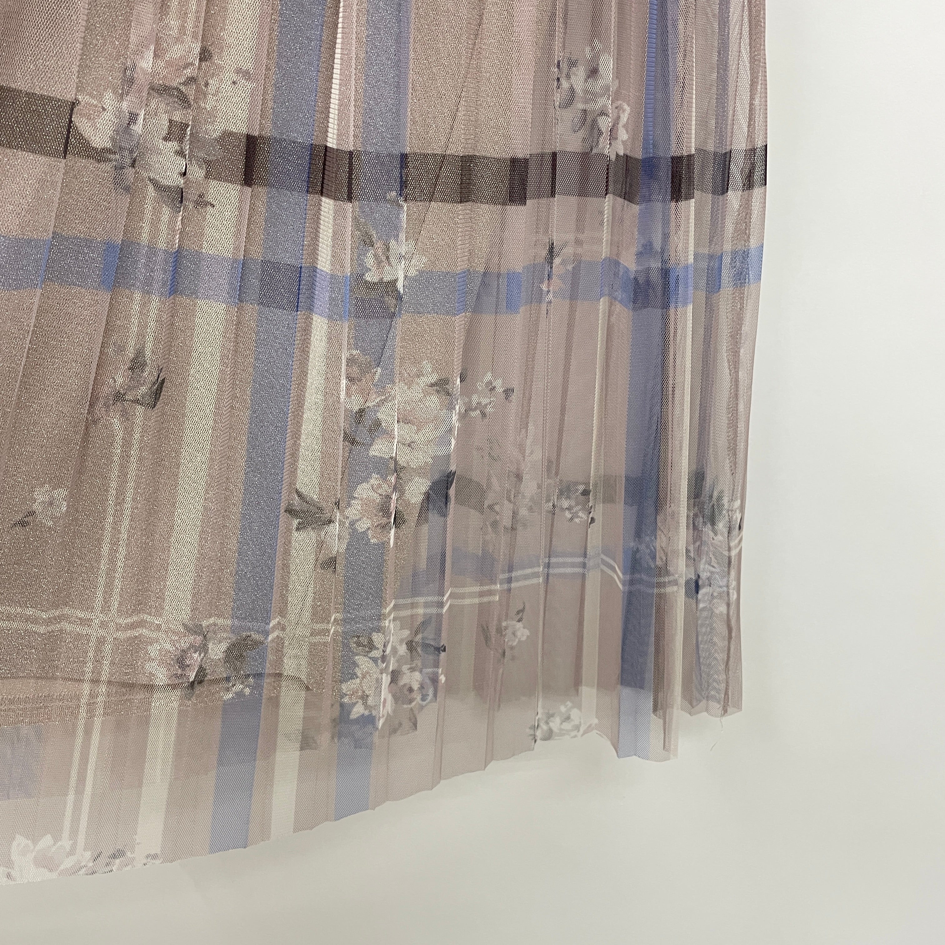 ラメカットの裏地に、花柄のプリントチュールを重ねたフェミニンなスカートです。