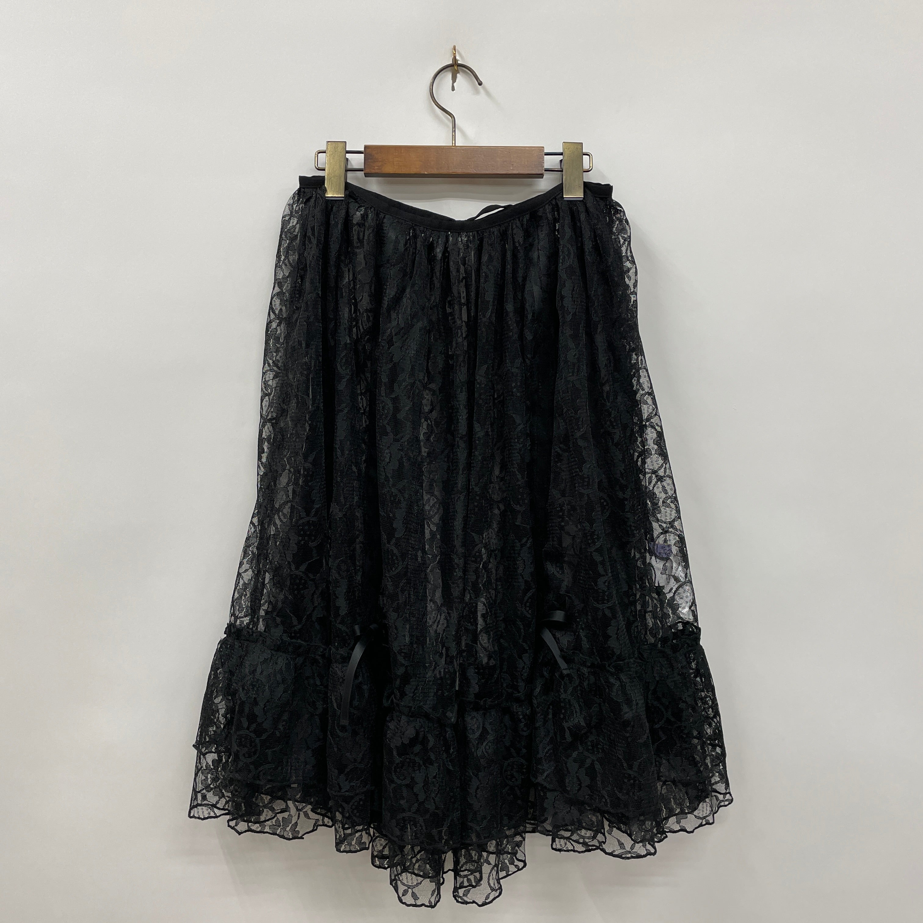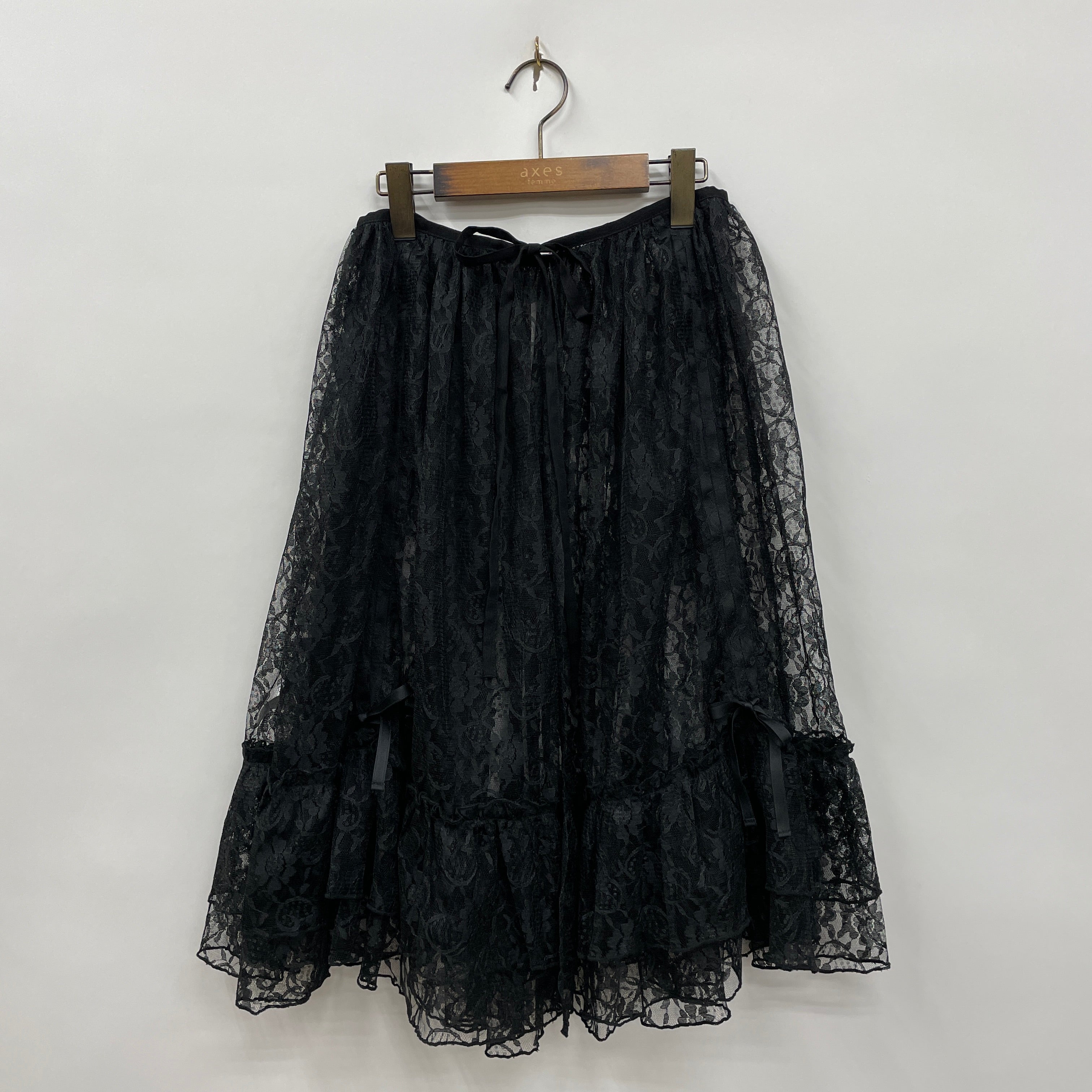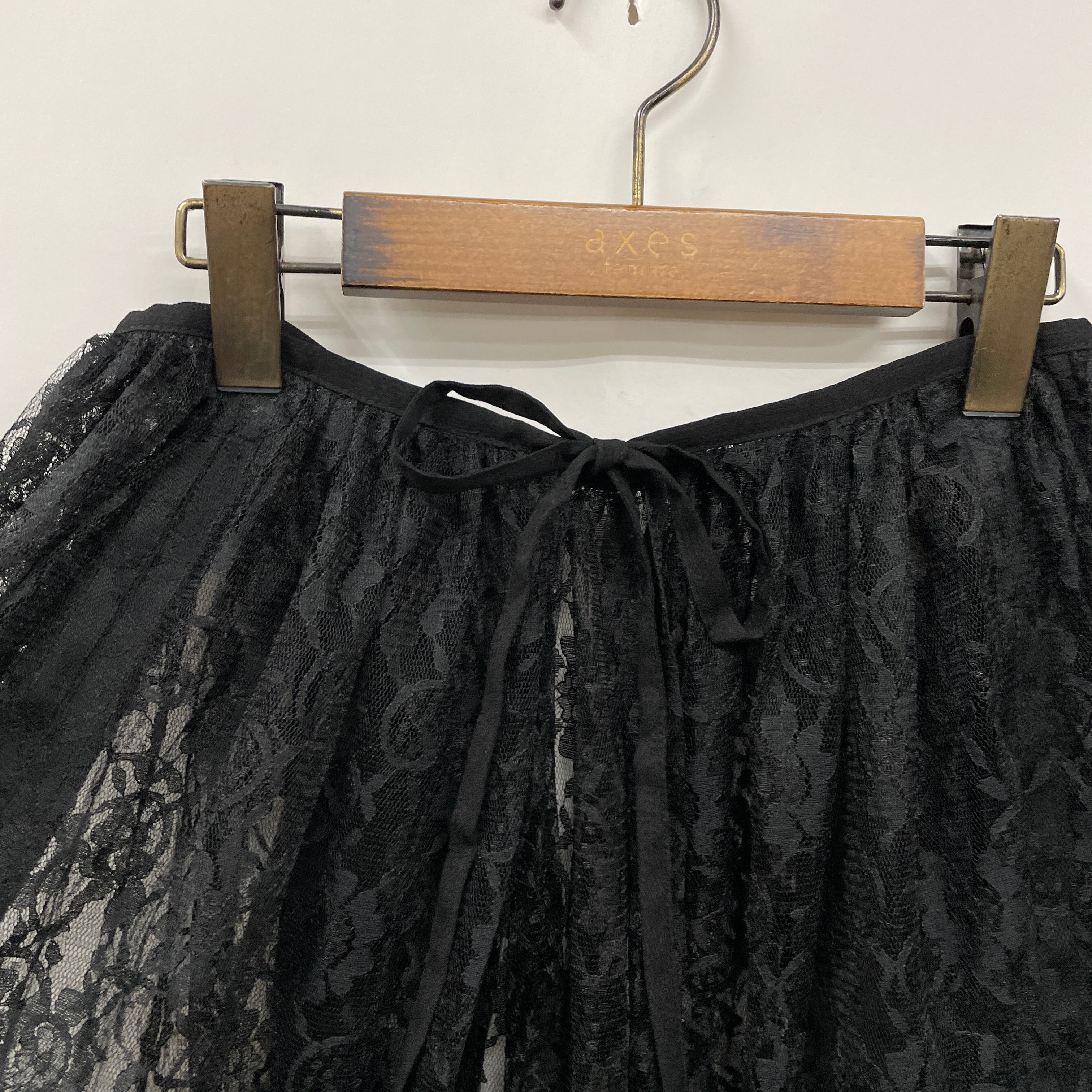 前後4箇所好きなように絞れるドロストデザインの総レースのオーバースカートです。いつもより豪華にしたい時にぴったりのプラスワンアイテム。前後どちらでもご着用頂けます。