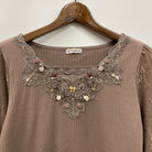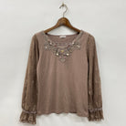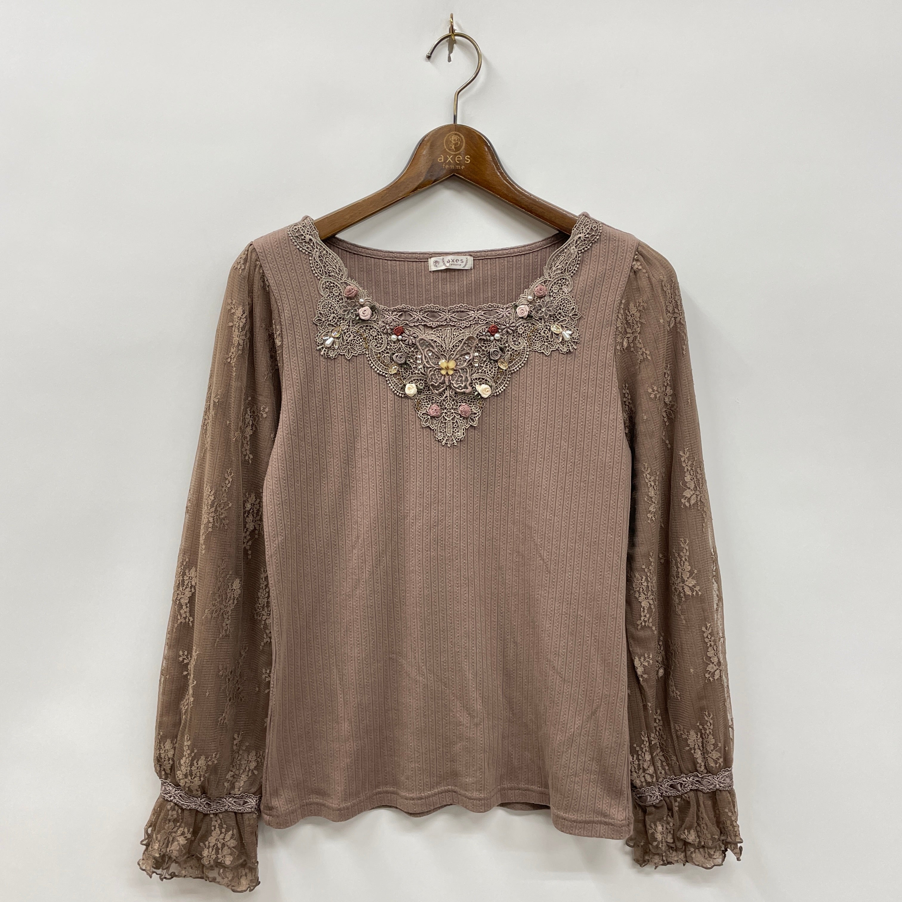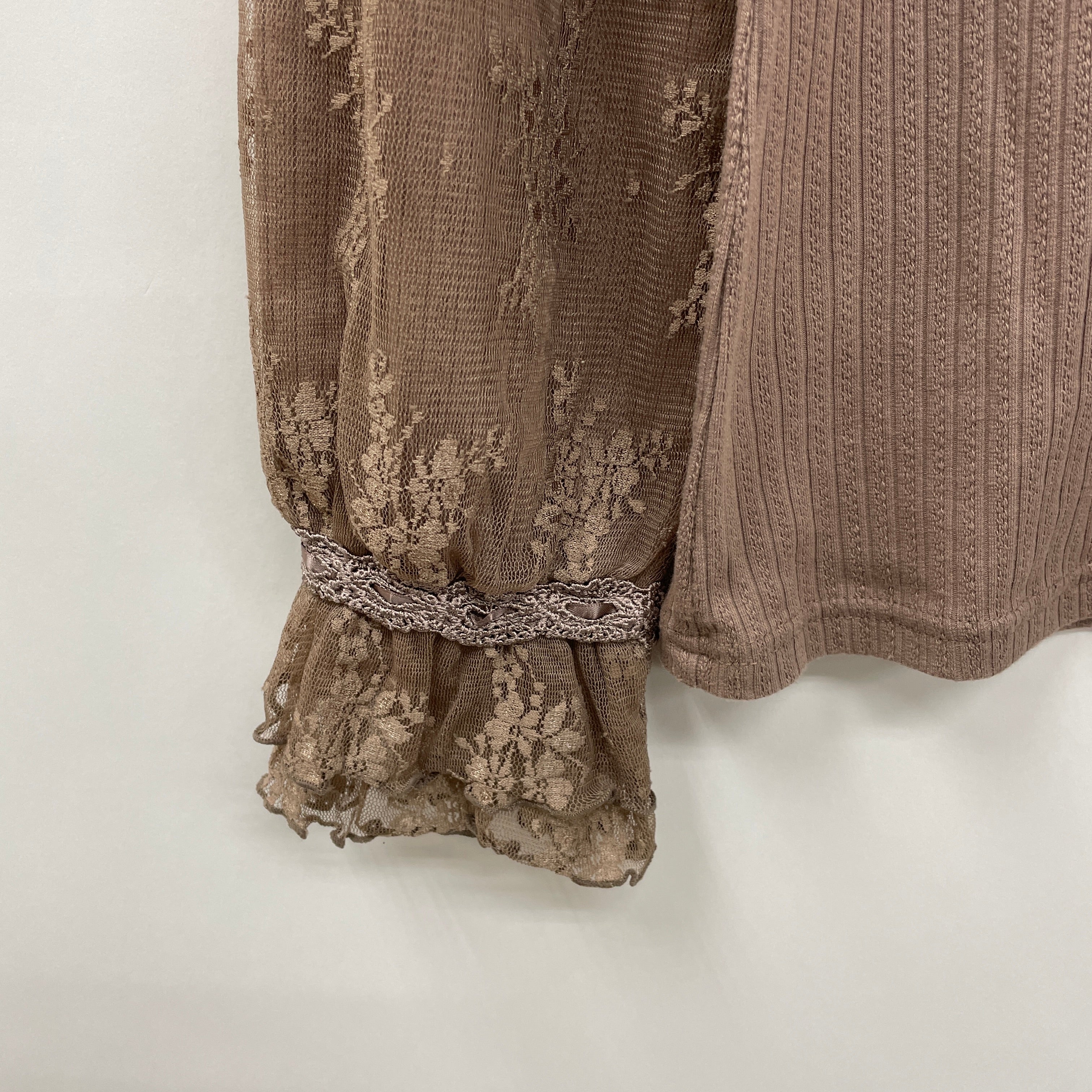 ローズガーデンを蝶が飛んでいるようなイメージからデザインに落としこんだリブプルオーバーです。袖口までレースデザインを重ねフェミニンな印象に。身頃はリブで伸縮性高く、着脱らくちんです。スカートと合わせたインスタイルがおすすめ。