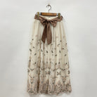 チュール生地に施したカラー刺繍が目を惹く、華やかなロングスカートです。