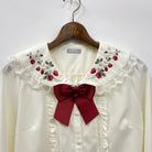 まるで苺畑の様にたっぷりと襟に苺の刺繡をあしらって春らしいガーリーな1枚に仕上げました。