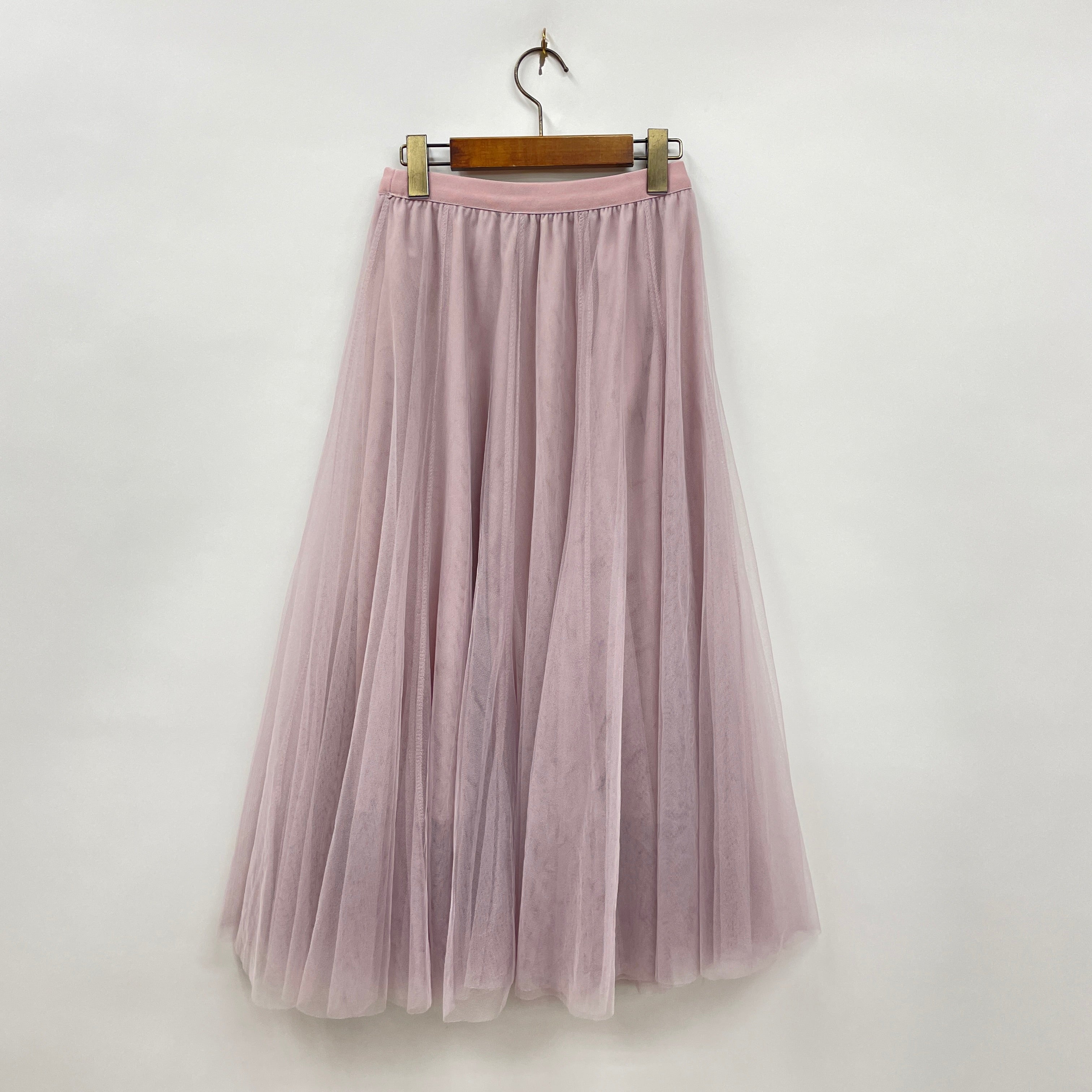 シンプルでどんなお洋服にも合うチュールスカートです。長めの丈で身体のラインが見えず、スタイルアップも◎ボリュームがあって可愛らしい印象に!