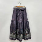 エレガントなジャカード生地にプリントされた、ワイン柄が秋を感じるエレガントな印象のスカートです。