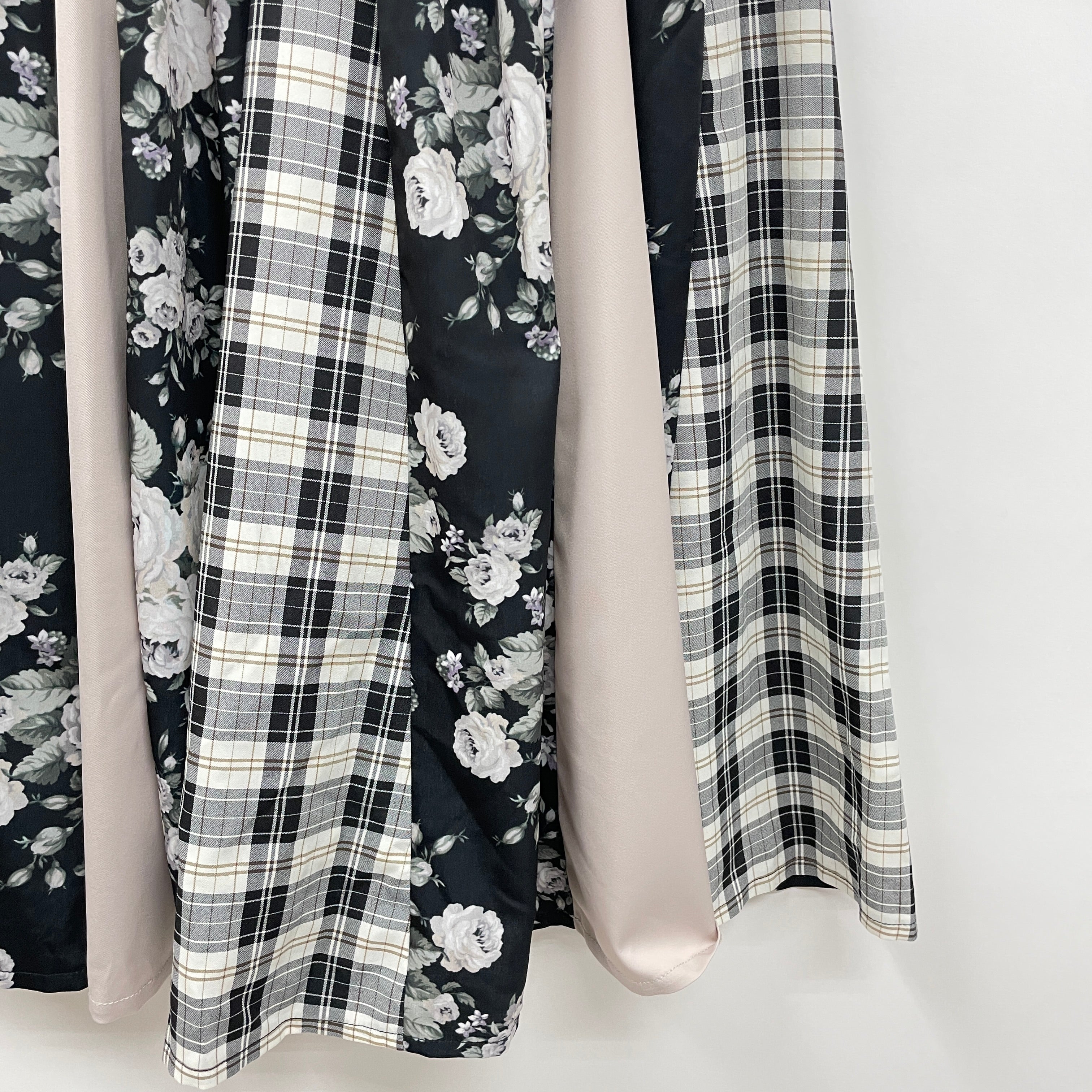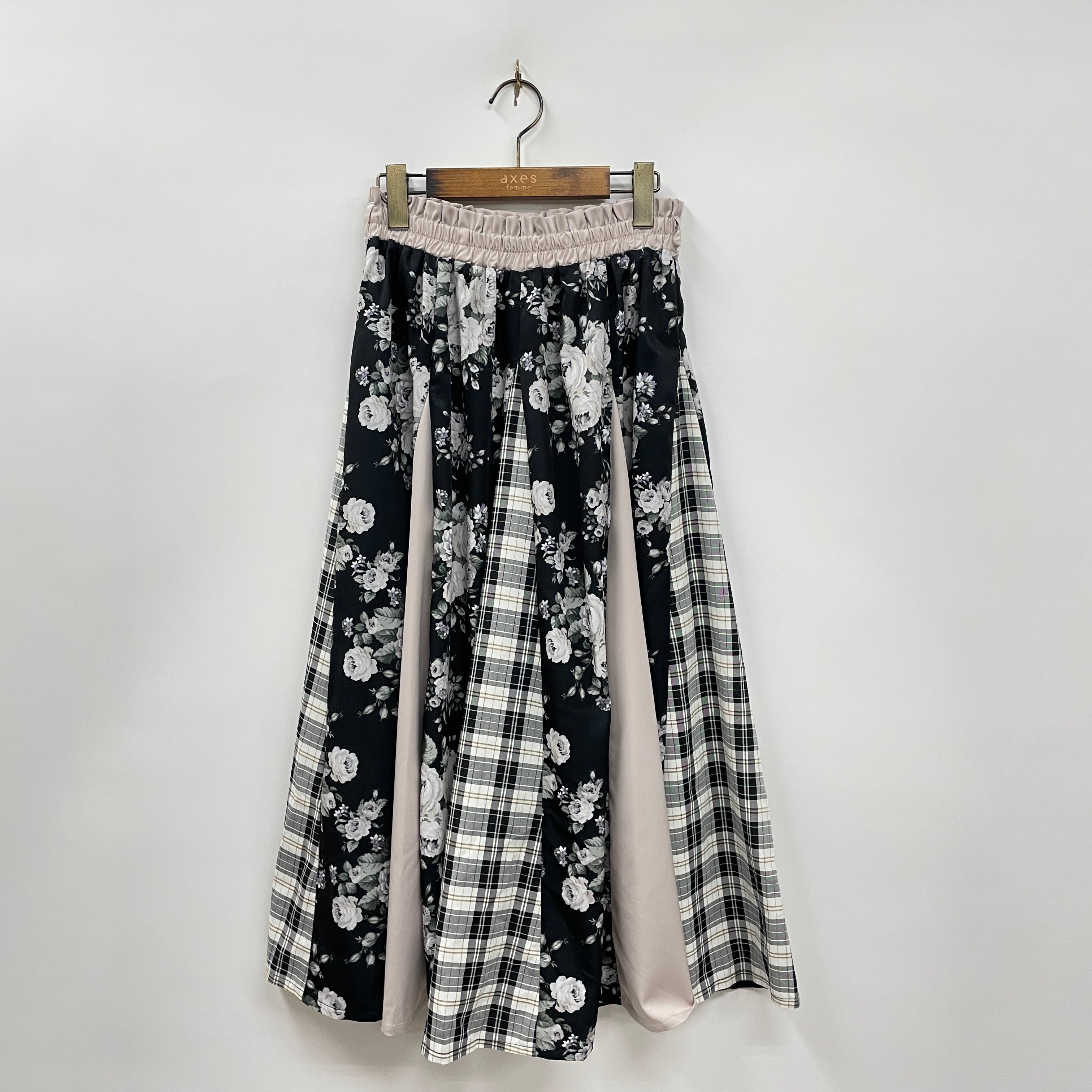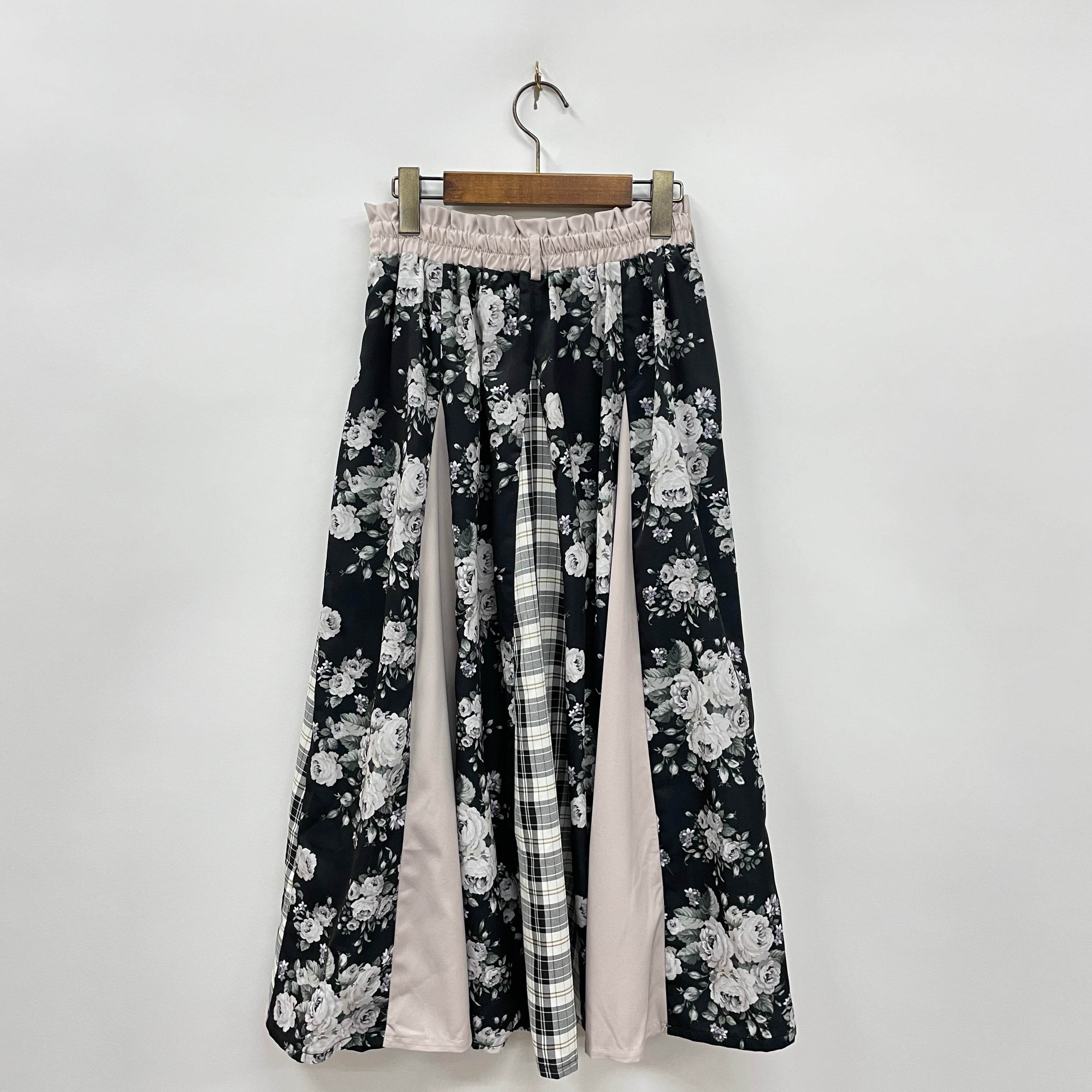 エレガントな薔薇や春らしいカラーがパッチワークになったスカートです。