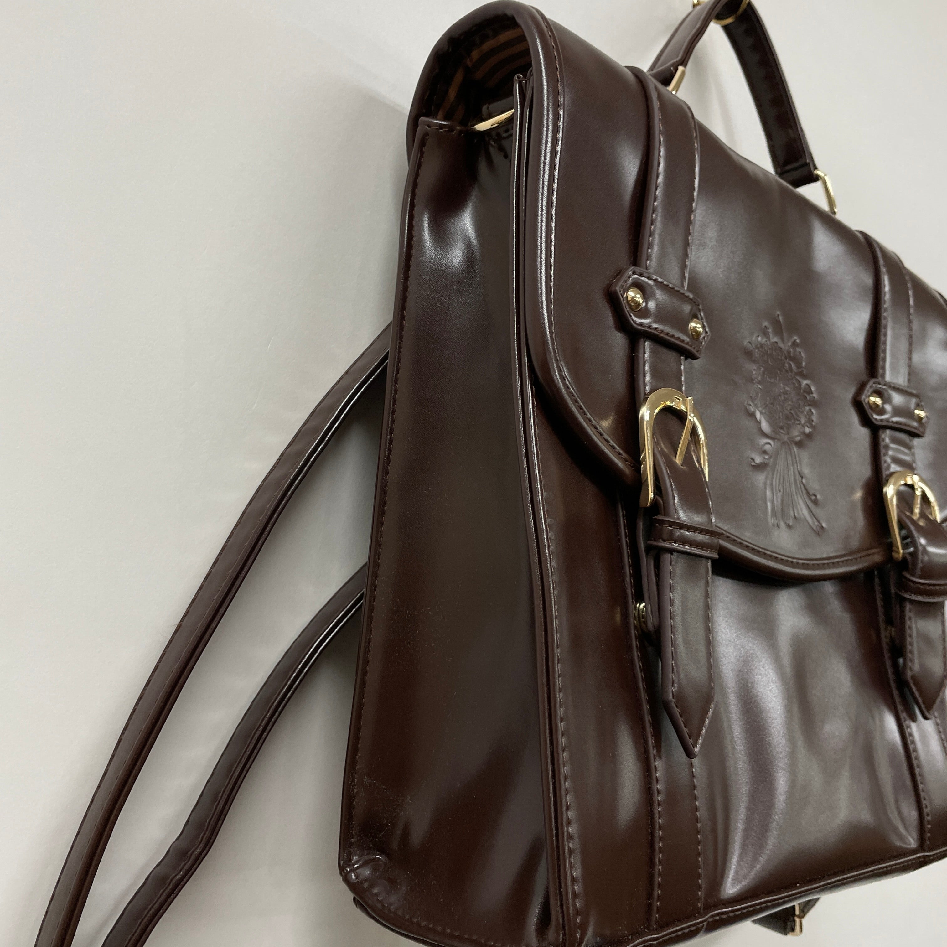 ハンドバッグ、ショルダーバッグ、リュックの3wayとしてお使い頂けるサッチェルバッグです。定番のブラウン、黒に加え春らしいアイボリーが登場!明るい色のコーデに合わせやすい新色です。裏地がそれぞれ色が違うストライプ柄になっている中までこだわったポエティックらしいデザインです。