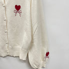 ハートとリボンのモチーフ刺繍がポイントのカーディガンです。
