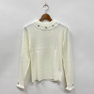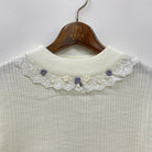 花柄のチュールレースやパール・ビーズをネックレスのように襟ぐりに施した、装飾性の高いデザイン。