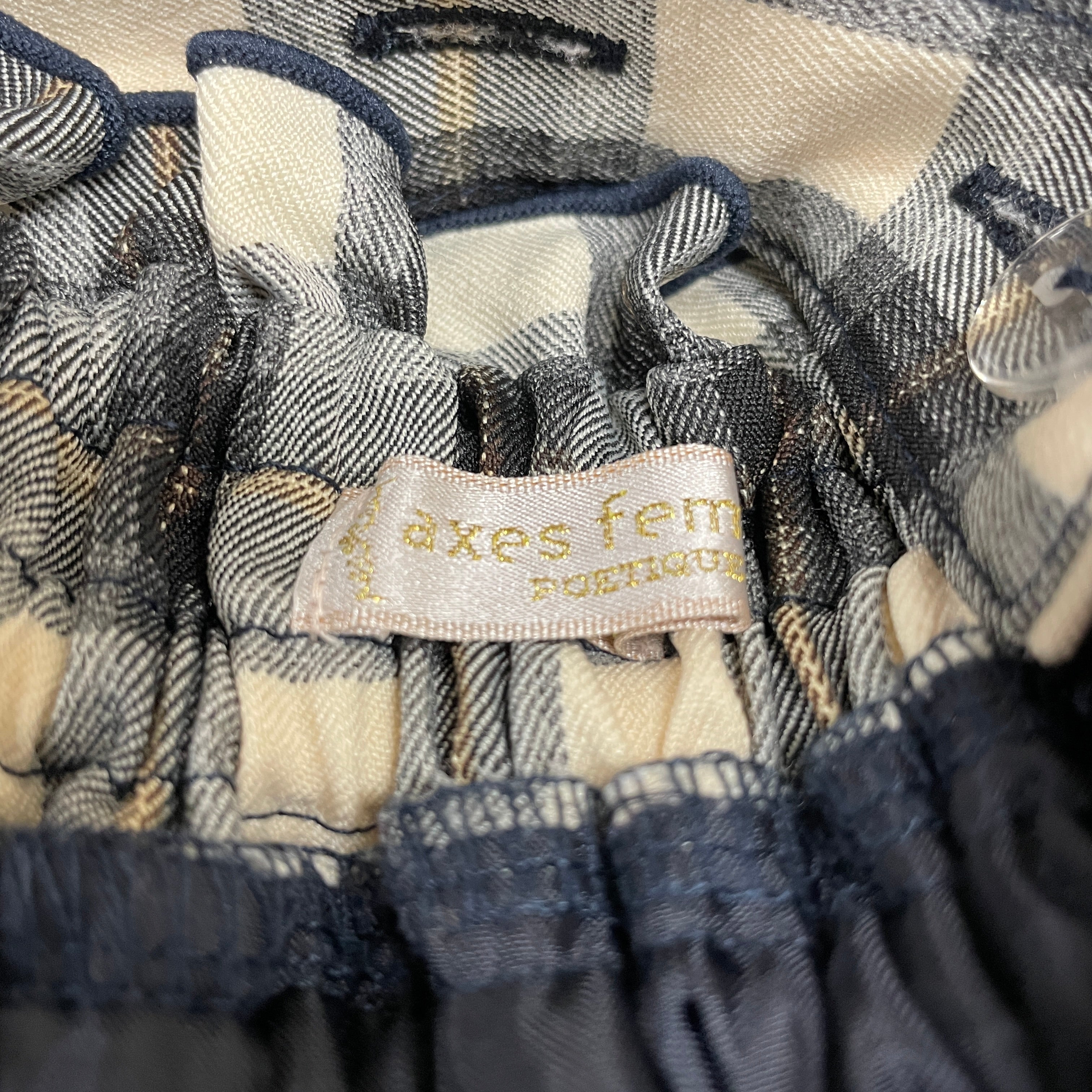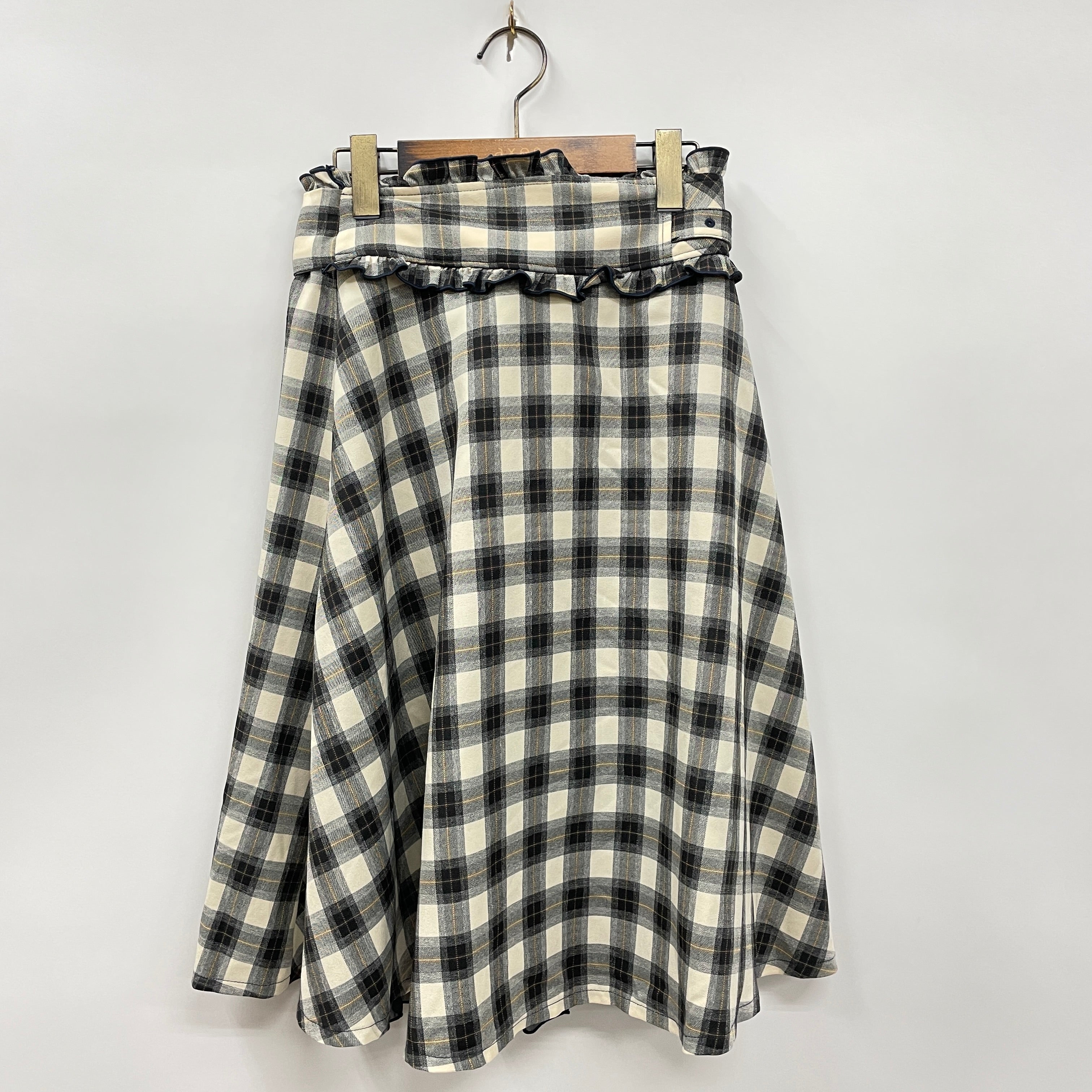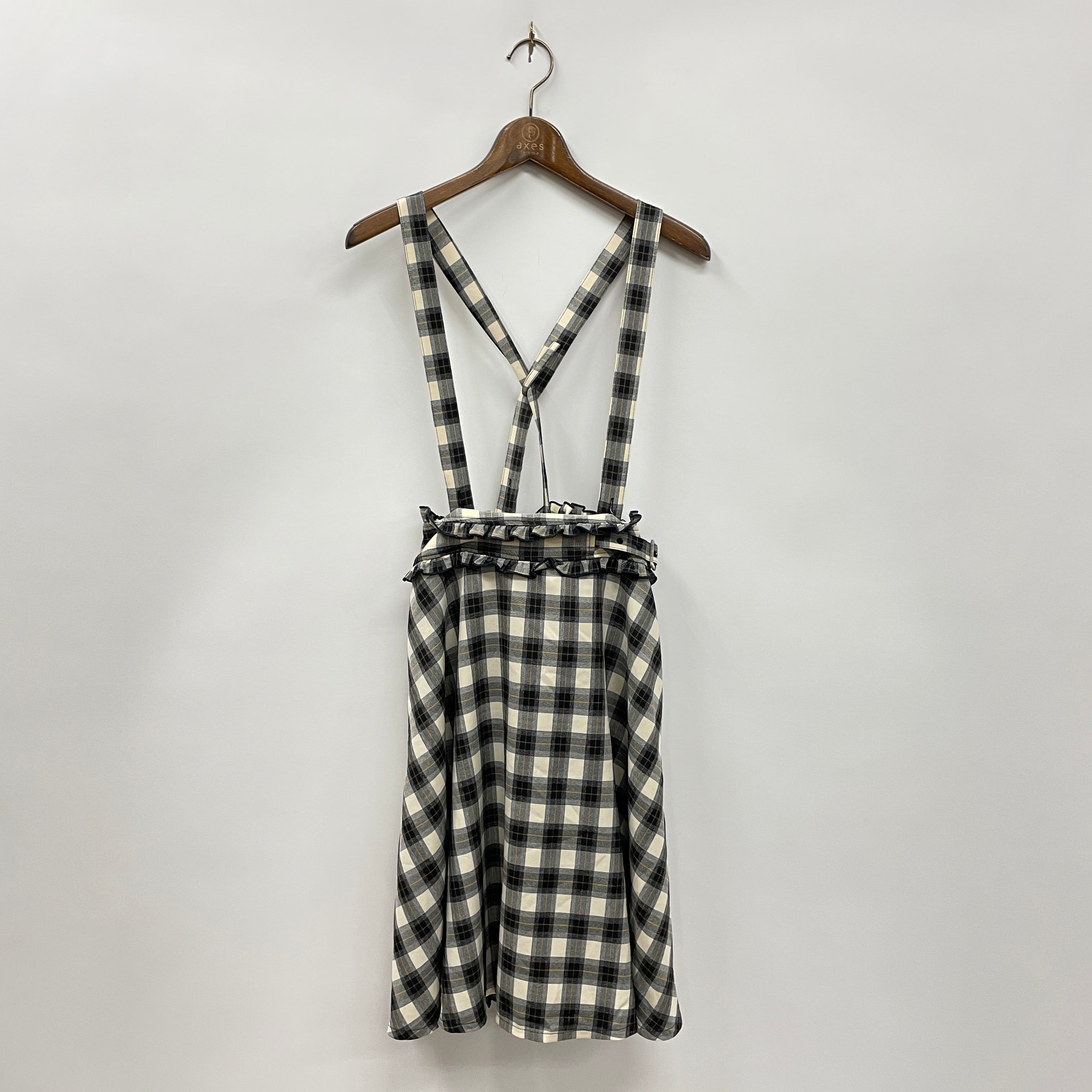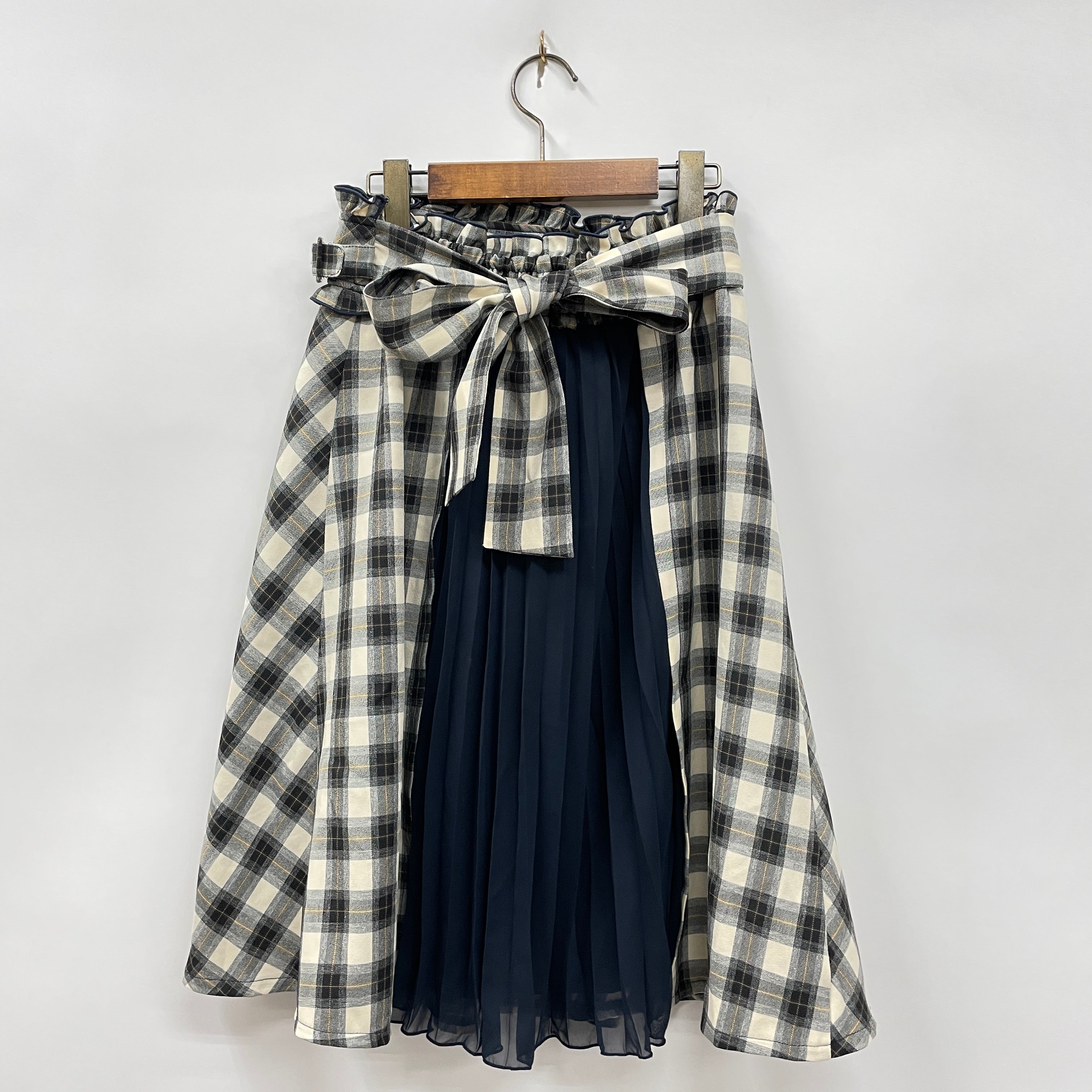スカートのバックスタイルにプリーツが入ったトレンド感もプラスされたスカートです。ハッキリとした柄のチェックが目を引きます!サスは取外し可能です。