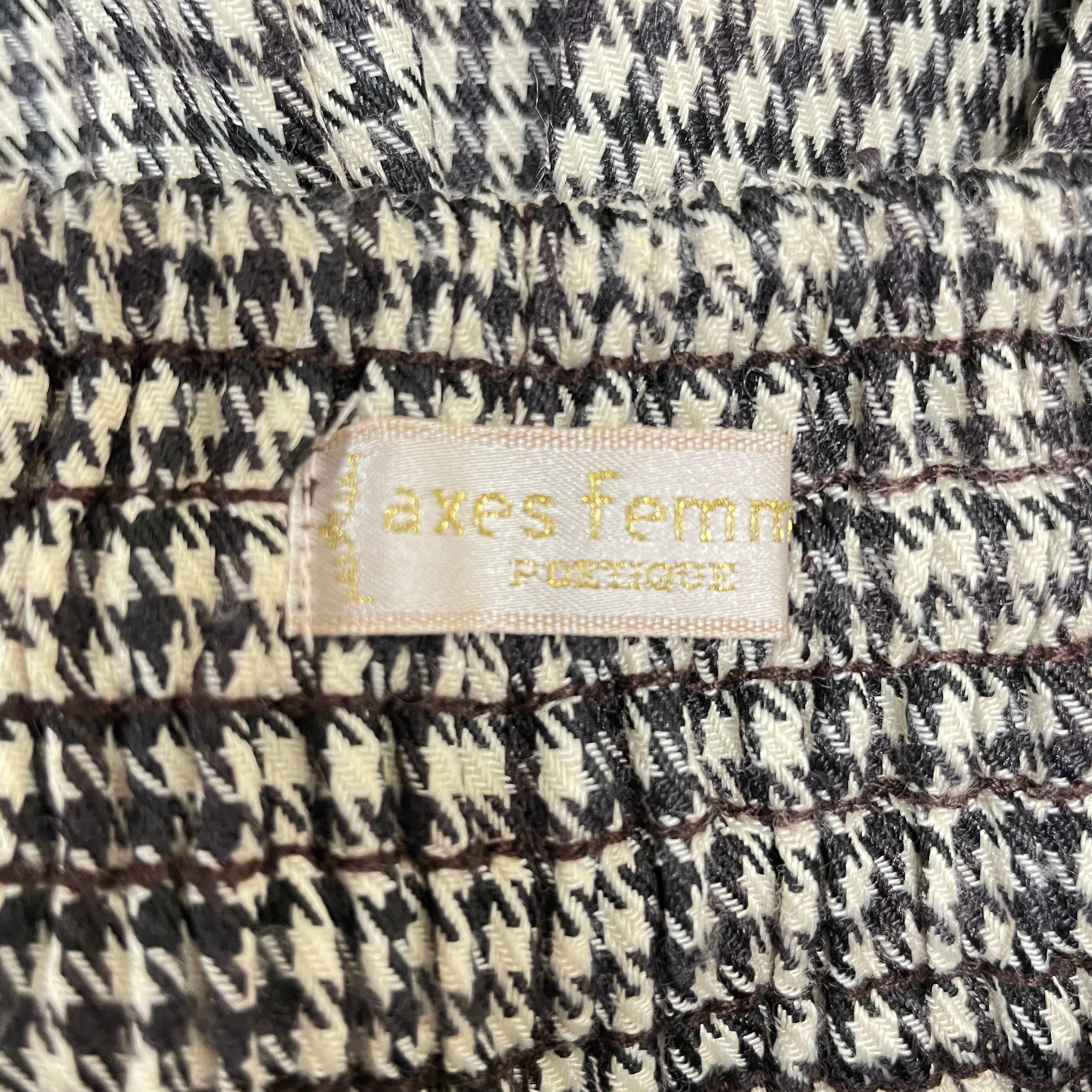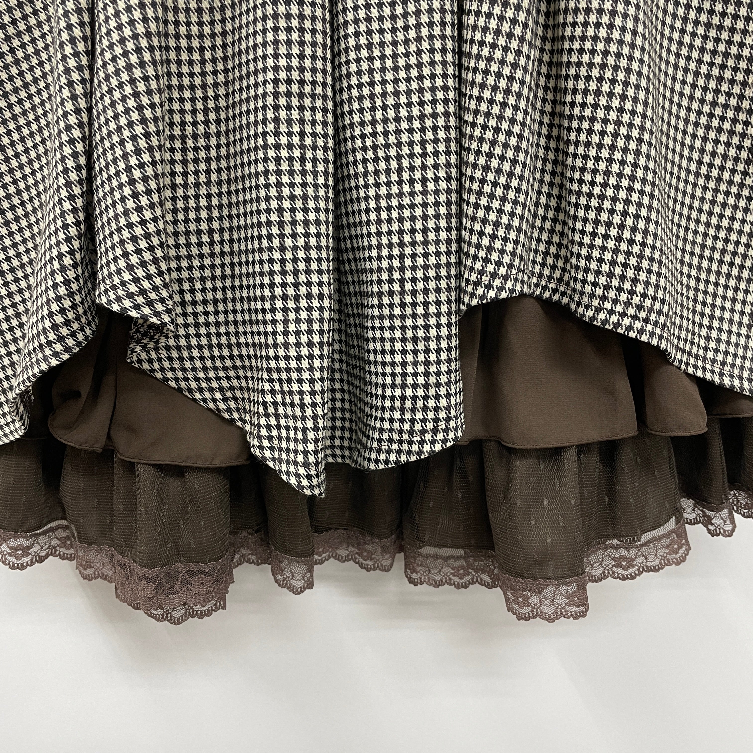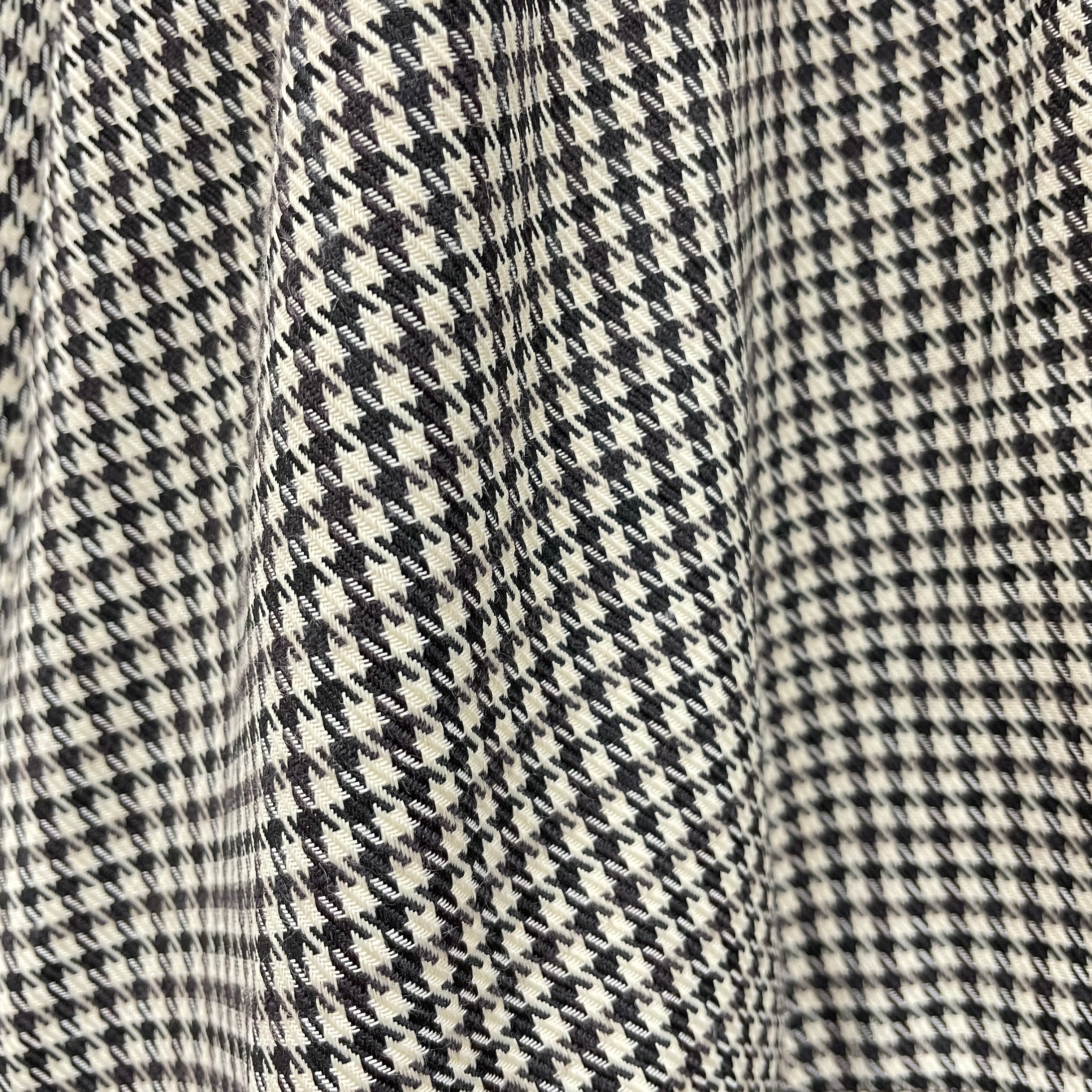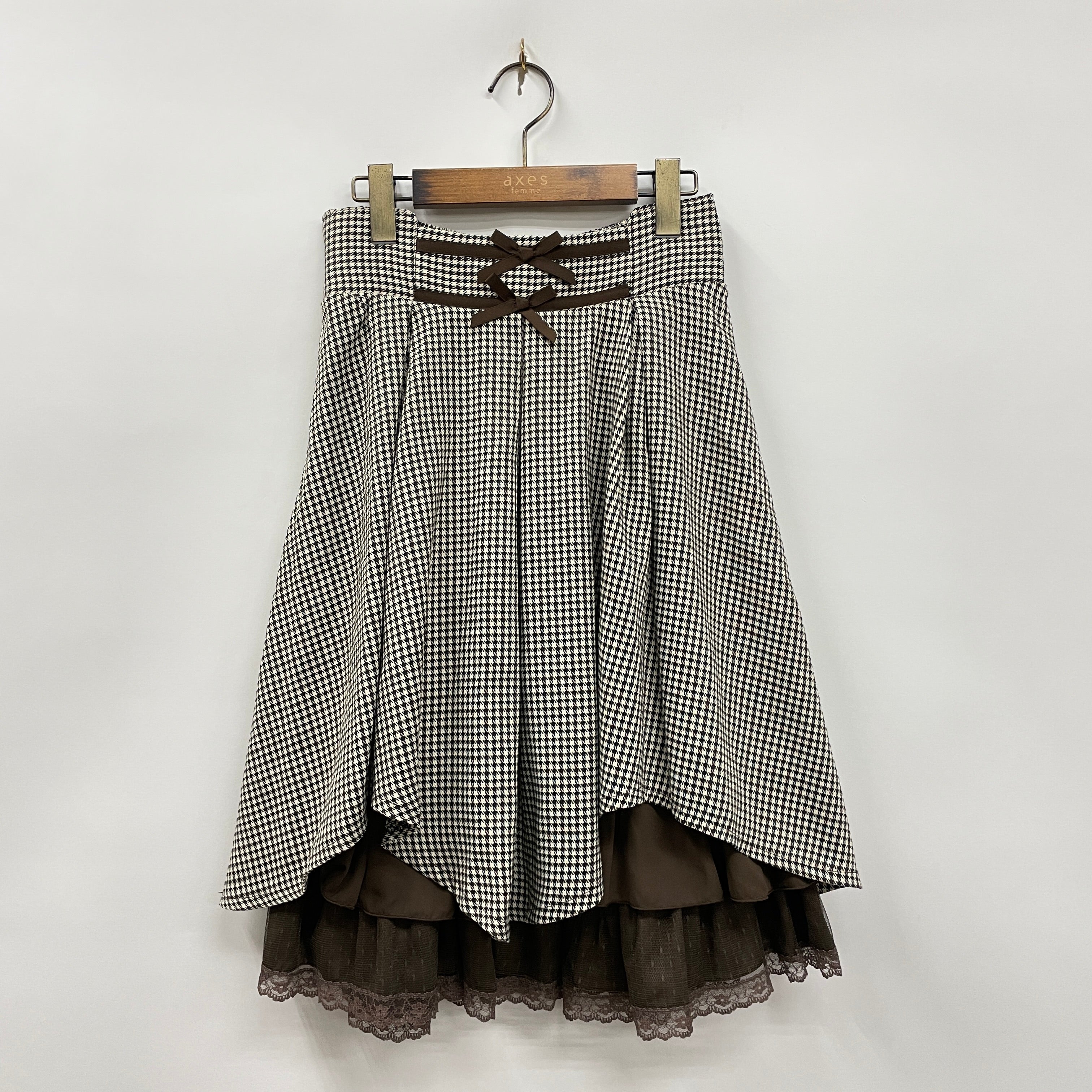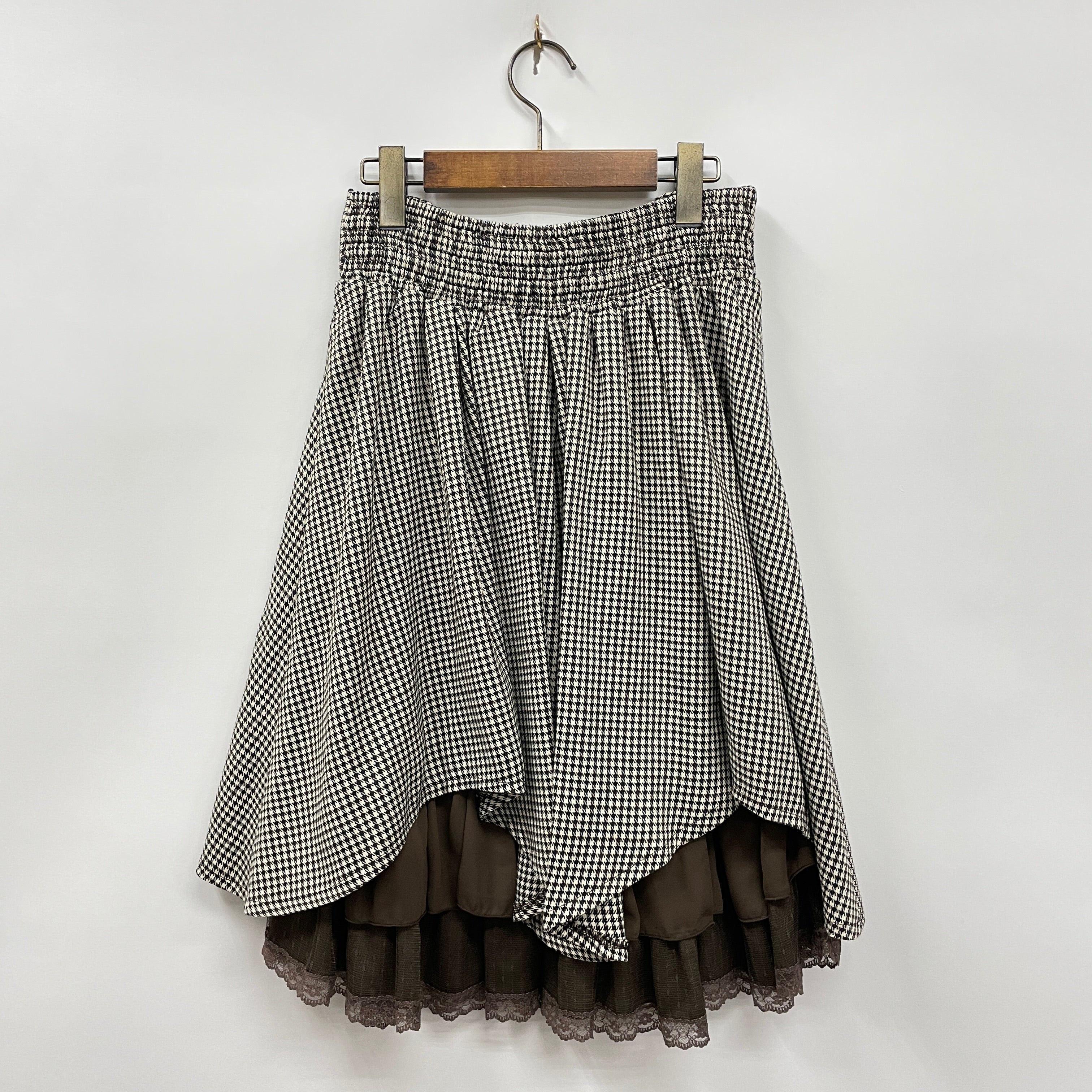細かいチェックテキスタイルを使用したミドル丈のスカートです。