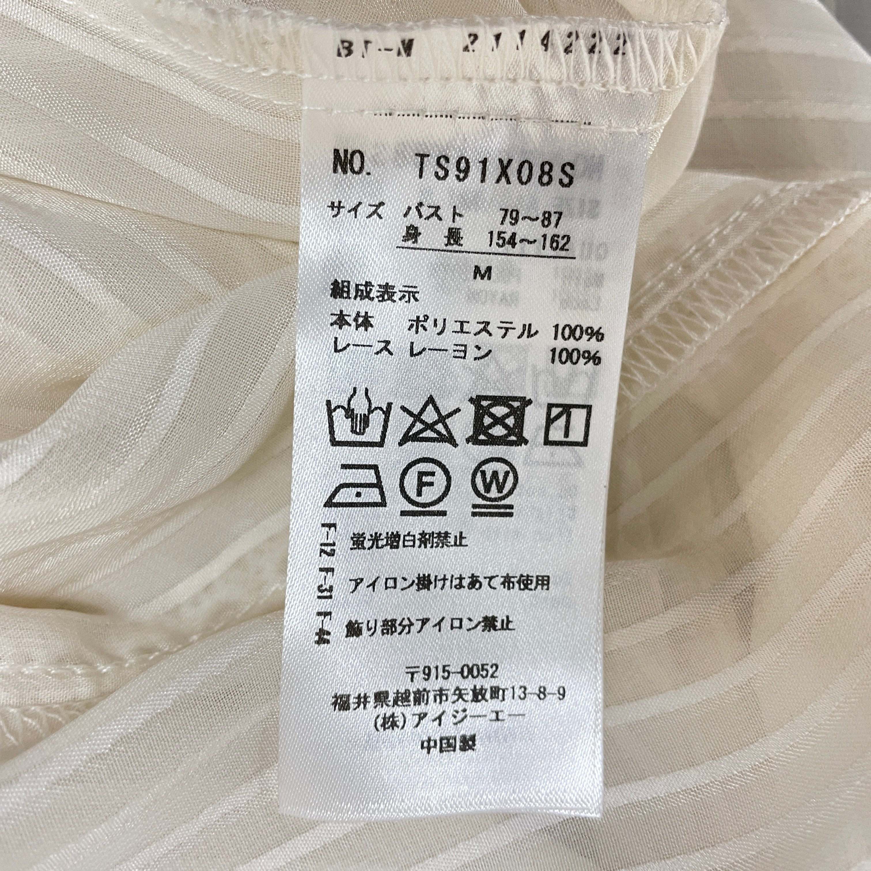 | サイズ | 着丈 | バスト | 肩幅 | 袖丈 | 袖口 |