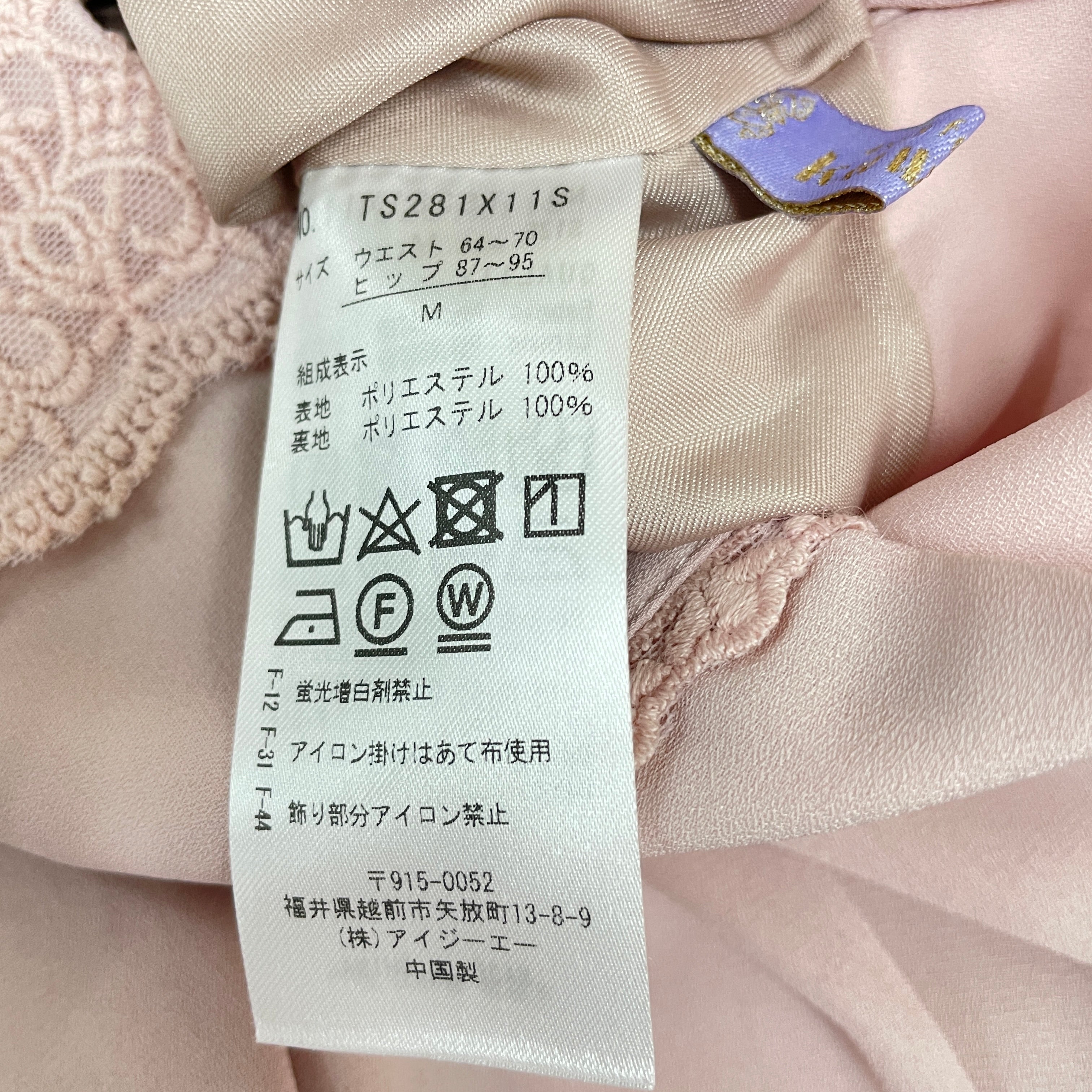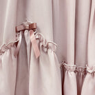ティアード切り替えは大き目のスカラップになっており、サテンリボンがあしらわれています。後ろ身頃はシャーリングになっているので簡単に着脱が可能です。後ろリボンは取り外しができます。こちらは50cm丈パニエがオススメです。