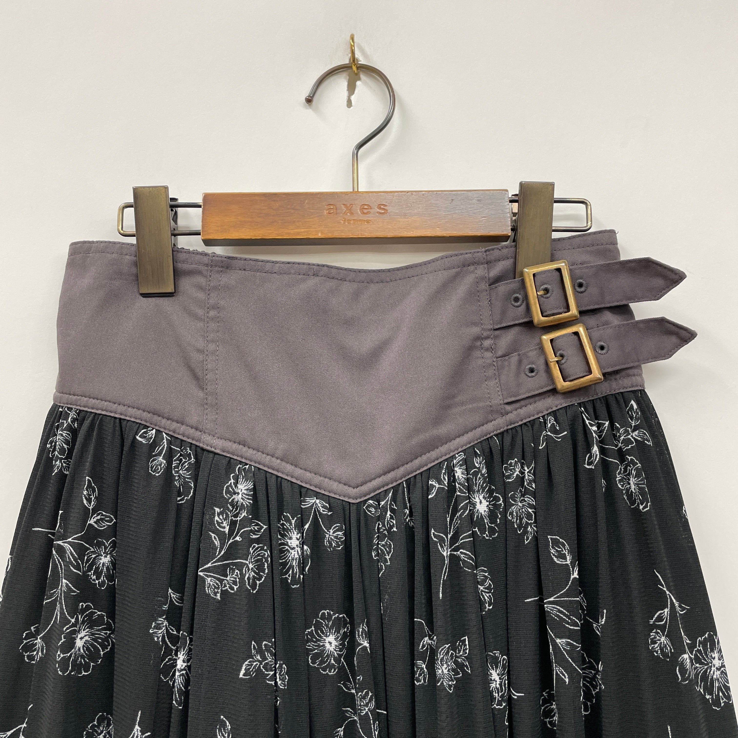 ハイウエストでV字切替のデザインになっており、サイドのベルトデザインが大人っぽい印象を与えます。